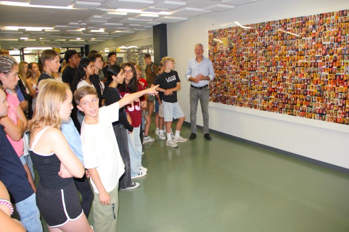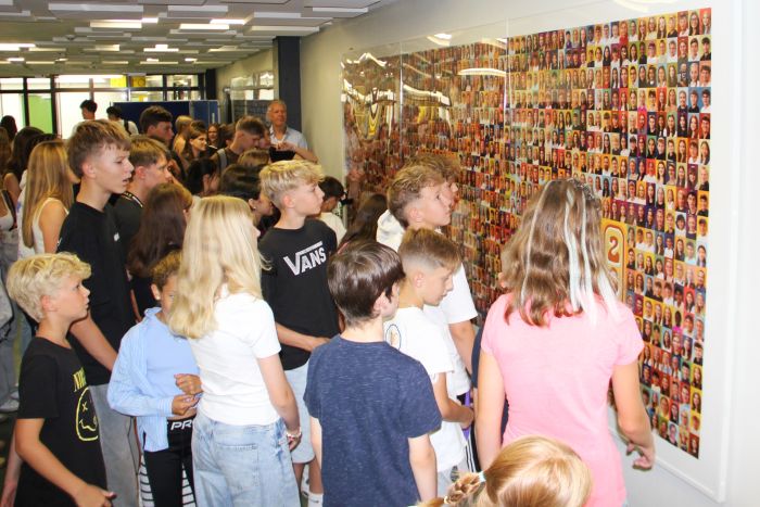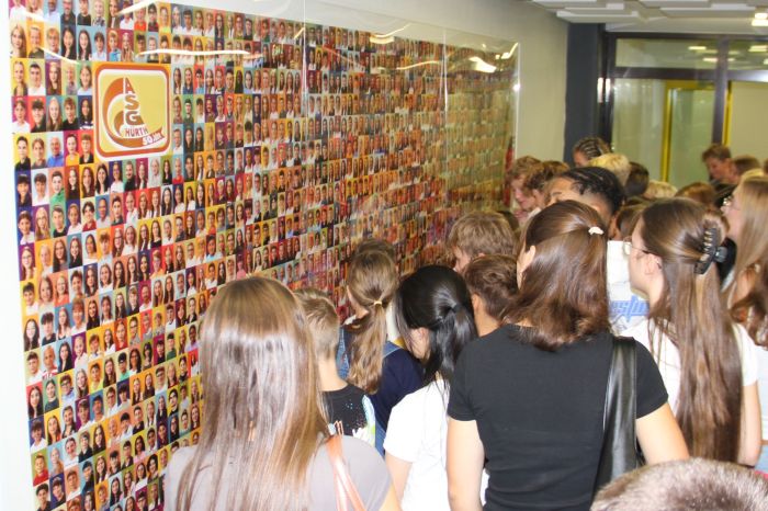 Die Sommerferien sind vorbei, das neue Schuljahr hat begonnen. Direkt am ersten Schultag gab es eine Aktion am ASG, bei der alle Schülerinnen, Schüler und Lehrkräfte im Mittelpunkt standen. Denn im ersten Obergeschoss wurde eine neue Fotowand eröffnet, die die gesamte Schüler- und Lehrerschaft in farbenfrohen Bildern zeigt.