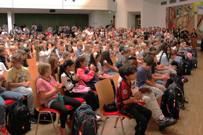 Der zweite Tag des neuen Schuljahres stand wie in jedem Jahr ganz im Licht der Einschulung der neuen Schülerinnen und Schüler am ASG und dennoch gab es dieses Mal etwas Besonderes. Erstmals nahm die Schule sieben neue fünfte Klassen auf, so viele wie nie zuvor. Und so besteht der neue Jahrgang aus vier sogenannten Englischklassen und drei Klassen im deutsch-spanisch bilingualen Zweig.