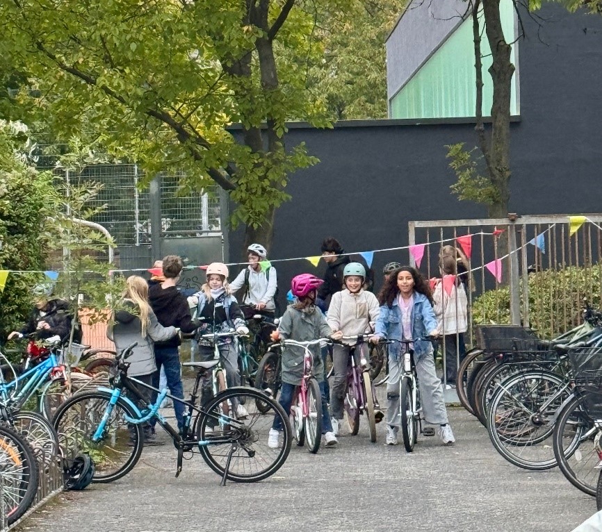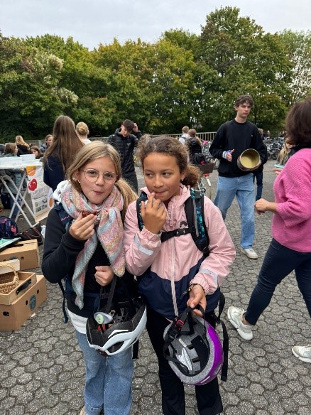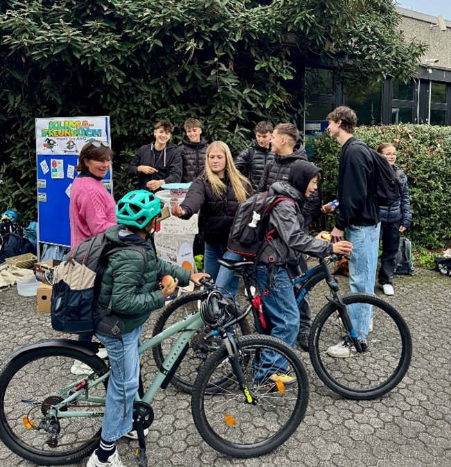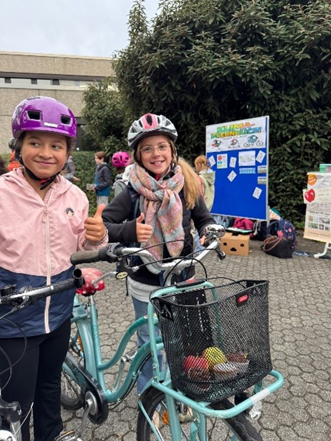 Zum Abschluss der Europäischen Mobilitätswoche wurden am Montag, den 22. September alle Schülerinnen und Schüler, die mit dem Fahrrad oder zu Fuß den Schulweg angetreten hatten, vom Klimarat mit Musik, selbstgebackenen Muffins, leckeren Äpfeln und kleine Präsenten empfangen. Damit wollte man ein Zeichen für umweltfreundliche und gesunde Mobilität setzen.