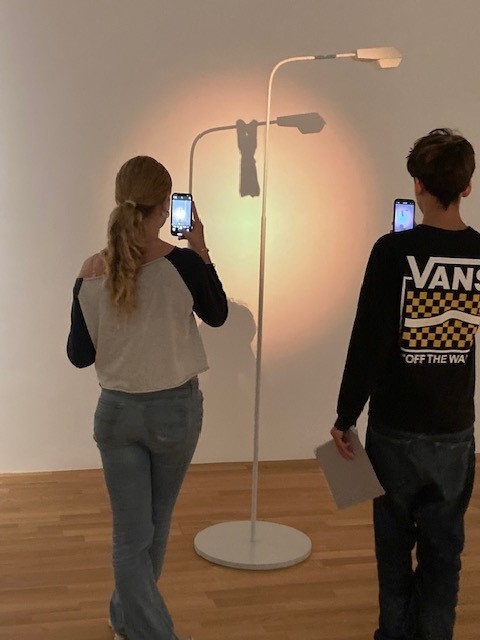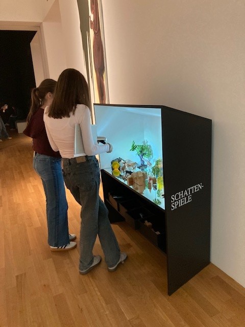 Andere Motive sind spielerisch mit Taschenlampen zu betrachten. In einem anderen Raum wird erst durch den eigenen Schlagschatten überhaupt ein Kunstwerk sichtbar: ohne Betrachter kein Kunstwerk!