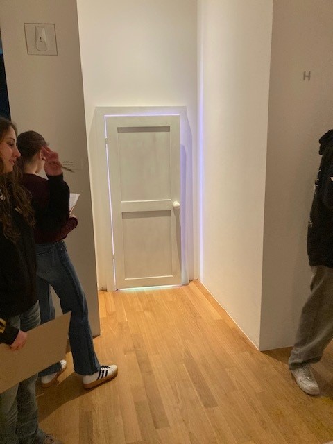 In einer Raumecke, etwas versteckt, ist eine geheimnisvolle Tür leicht angelehnt. Durch die Spalten des Türrahmens dringt ein grelles und etwas verstörendes Licht. Wohin führt die Tür? Was verursacht dieses Licht? Assoziationen zu Film- oder Literaturmotiven liegen nahe, da Türen oft in andere Welten führen, etwas Verborgenes oder auch Unheimliches hinter der Tür liegen kann…. Die Neugierde ist geweckt.