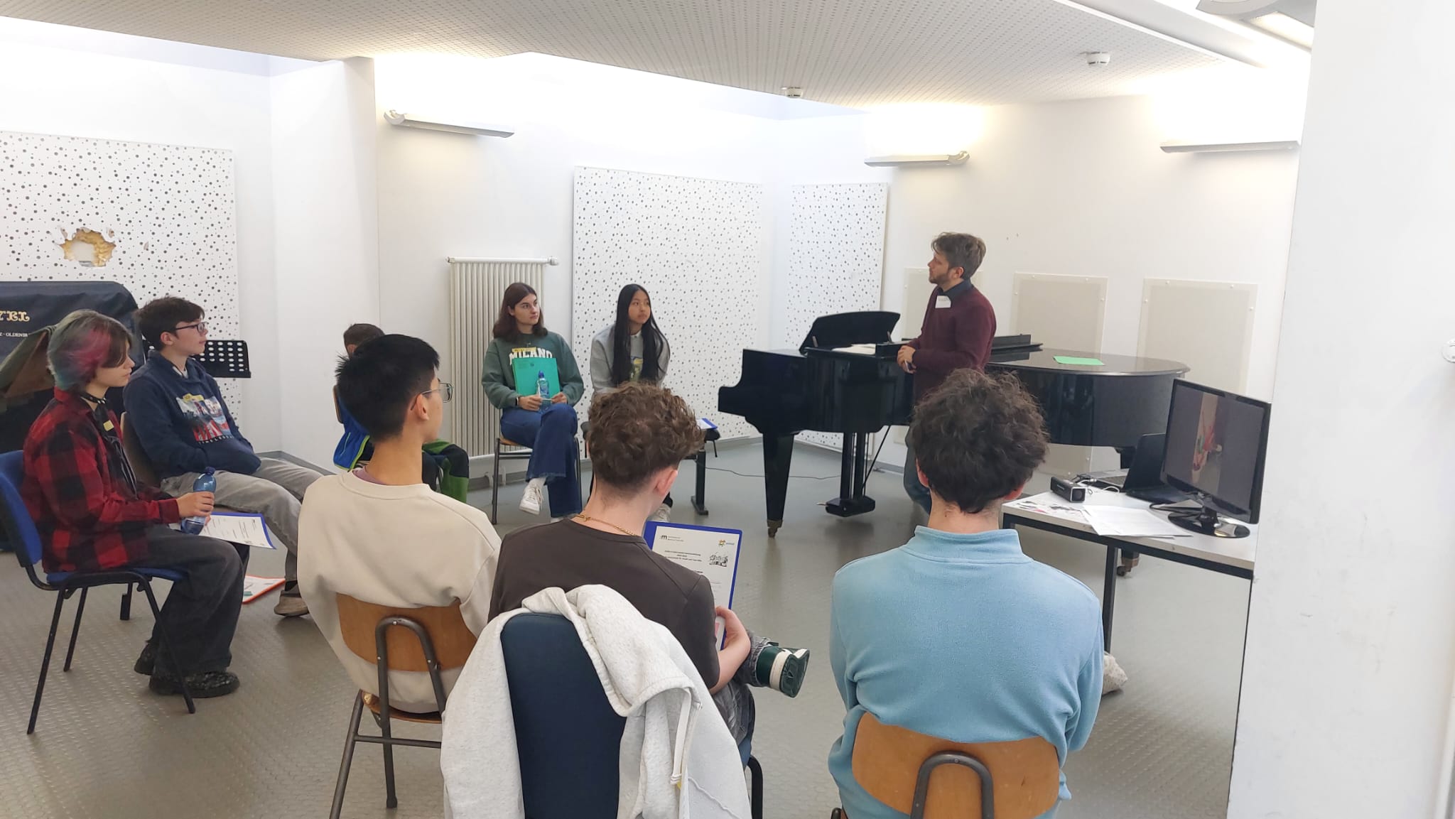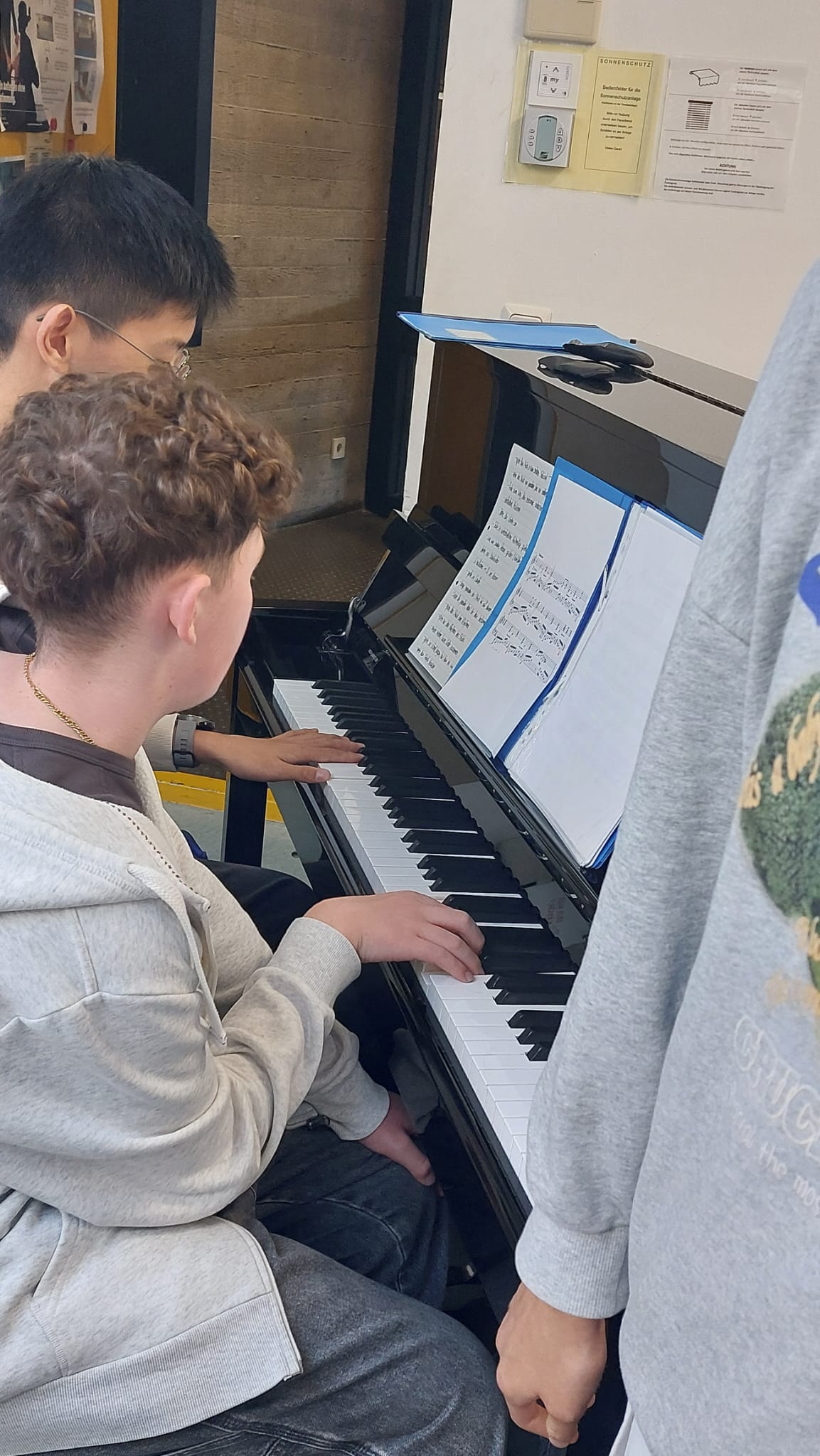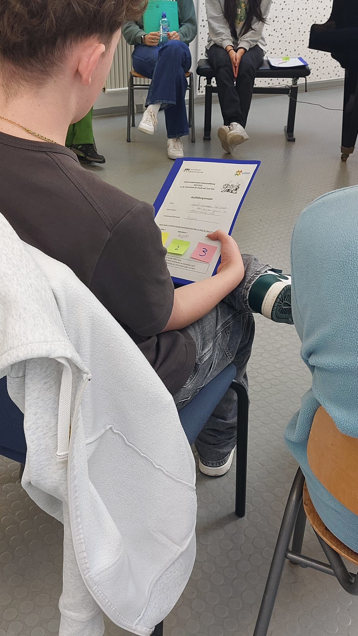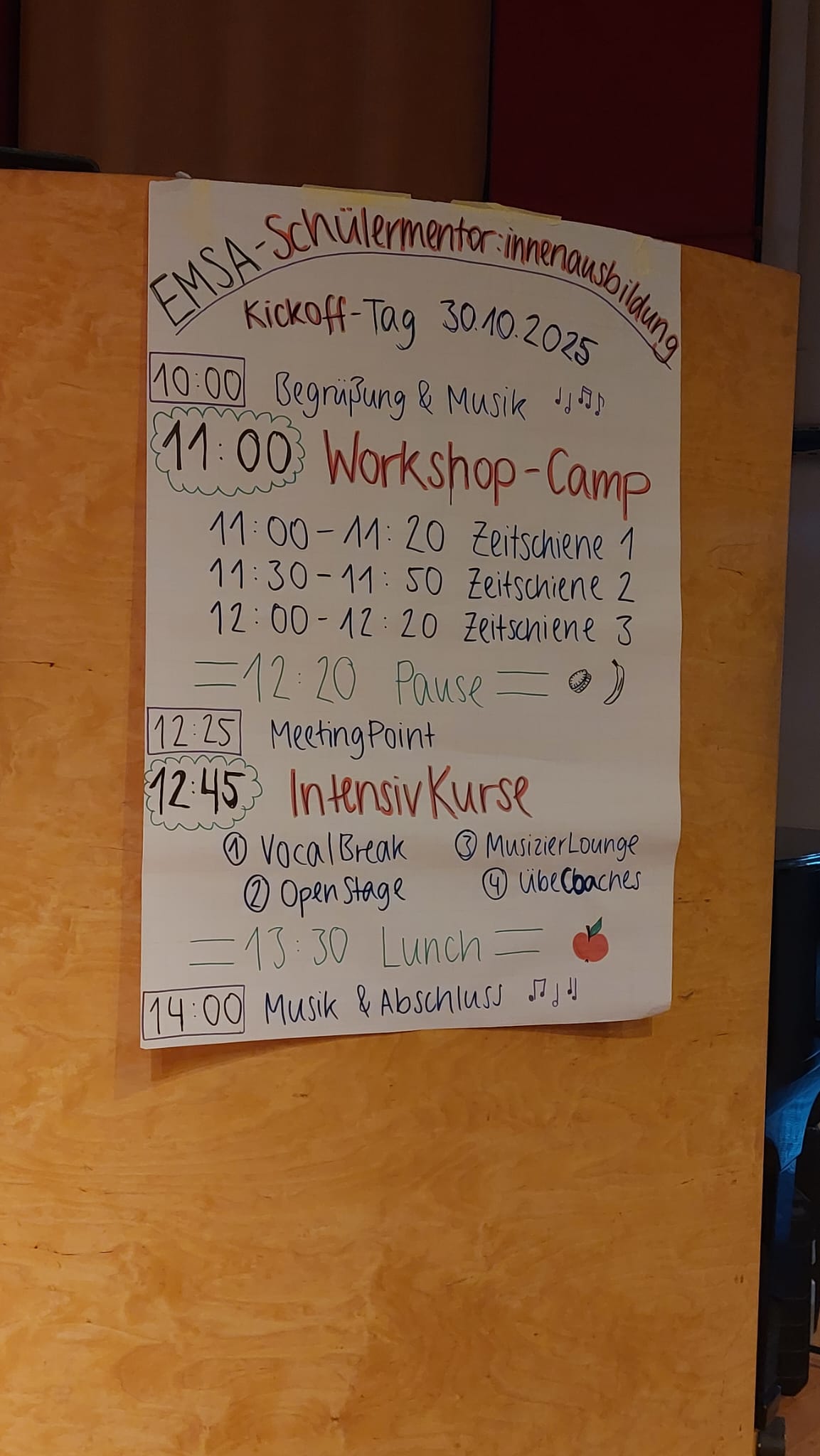 Am Donnerstag dem 30.11.25 waren sieben Schülerinnen und Schüler zur Schülermentorenausbildung in der Musikhochschule Köln. Das EMSA-Zentrum hat ein breit gefächertes Fortbildungprogramm erarbeitet und angeboten. Im Workshop-Camp konnte man zum Beispiel Anregungen bekommen zu den EMSA-Bausteinen Vocal Break, open stage oder Übezeit.