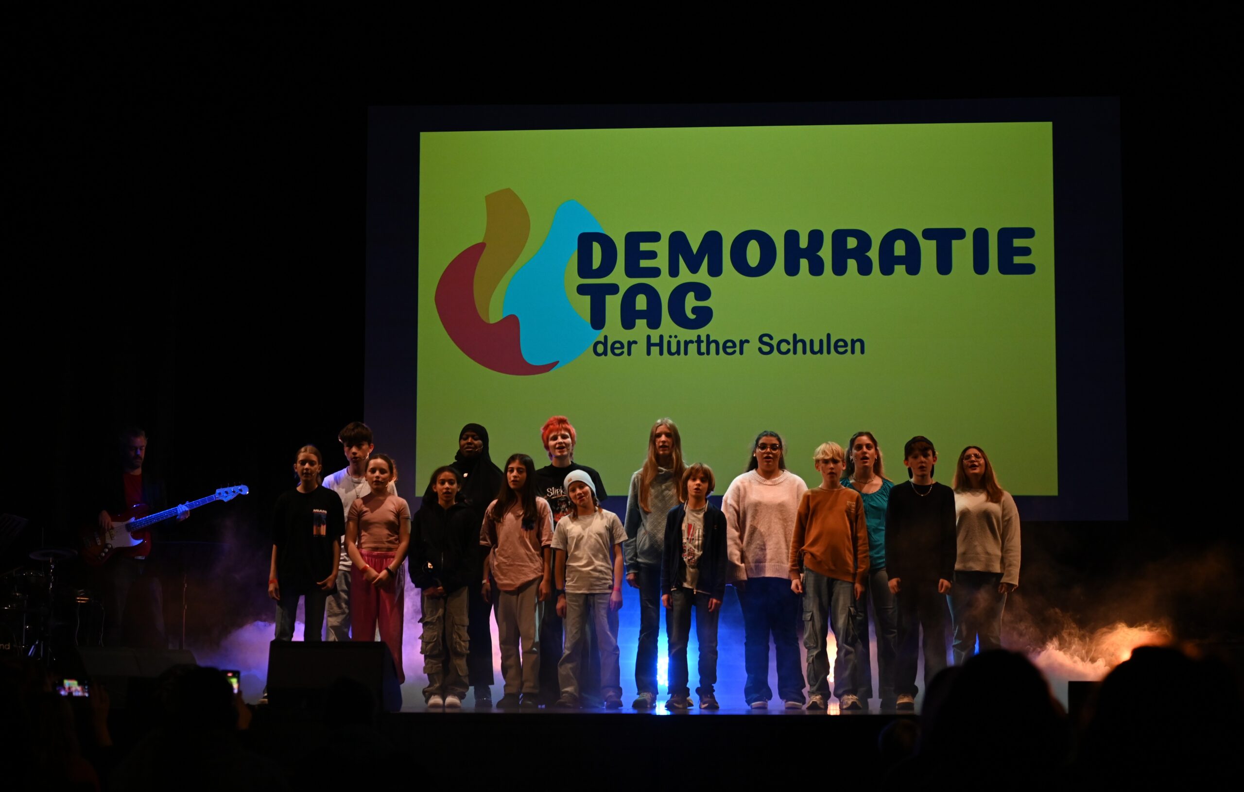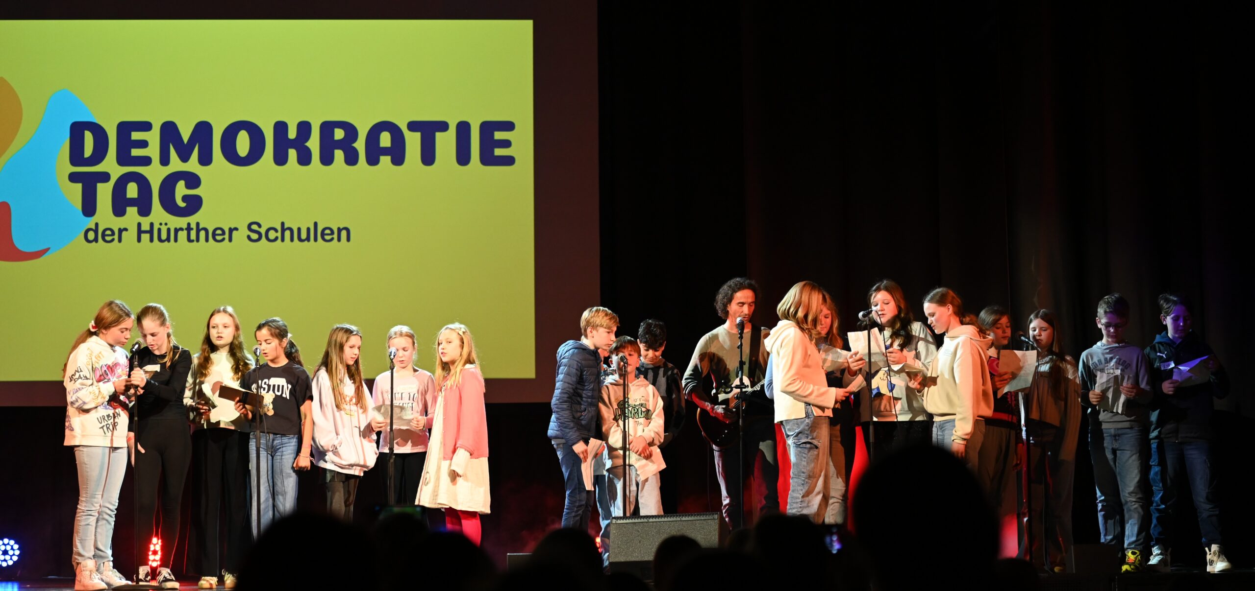 Dieses war der zweite Demokratietag der Hürther Schulen und er hat erneut gezeigt, wie kraftvoll gemeinsames Engagement sein kann. Schülerinnen und Schüler haben nicht nur über Demokratie gesprochen, sondern sie gelebt, gesungen, gemalt und geteilt.