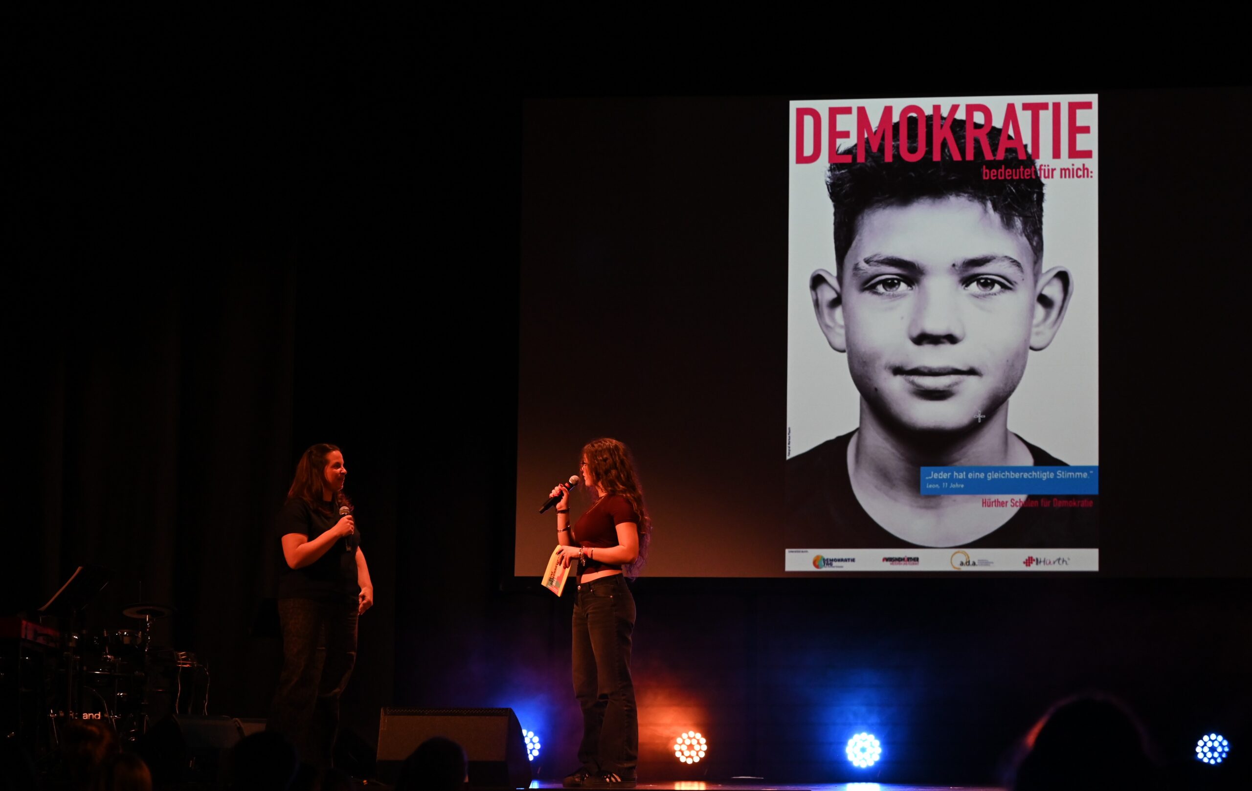 Ein besonderes Highlight war der Musikworkshop mit Stephan Brings. Gemeinsam mit dem Kölner Musiker schrieben Jugendliche einen Text für einen Song, der die Botschaft des Tages perfekt einfing. In der Abschlussveranstaltung wurde er begeistert präsentiert – mit der zentralen Botschaft: „Unsere Demokratie, die ist geil – denn davon sind wir alle ein Teil!“