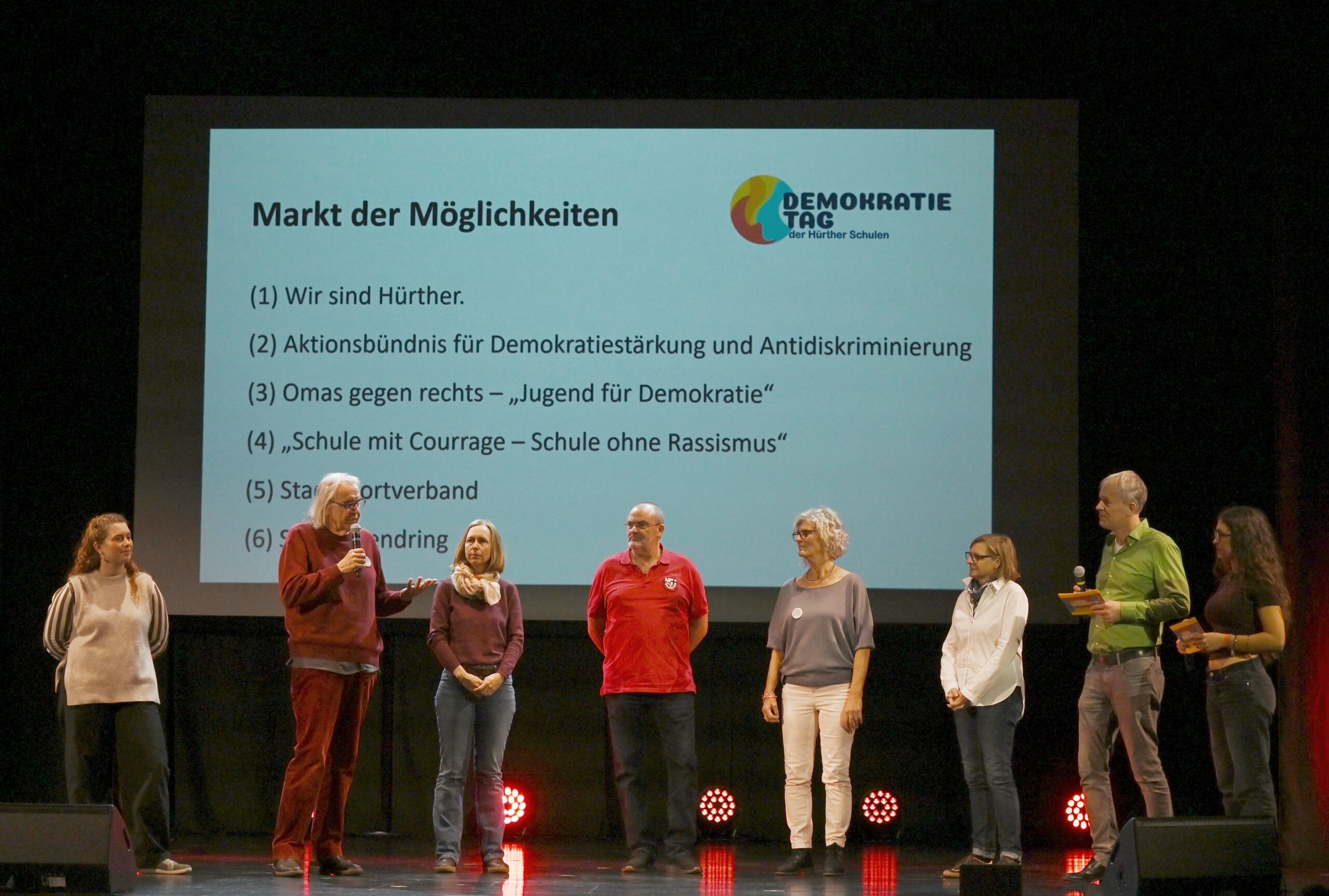 Beteiligt waren neben dem Albert-Schweitzer-Gymnasium die Friedrich-Ebert-Realschule, das Goldenberg Europakolleg, das Ernst-Mach-Gymnasium, die Gesamtschule Hürth und die Hauptschule Kendenich. Gemeinsam mit dem Aktionsbündnis für Demokratiestärkung und Antirassismus (a.d.a.), dem Schulnetzwerk „Schule gegen Rassismus – Schule mit Courage“, dem Verein „Wir sind Hürther!“, dem Stadtsportverband, dem Stadtjugendring Hürth und weiteren Partnern entstand ein vielfältiges Programm, das zeigte, wie lebendig Demokratie sein kann.