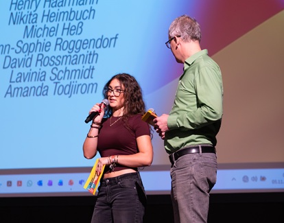 Der Poetry-Slam-Workshop mit Max Raths bot Raum für persönliche Gedanken und kreative Ausdrucksformen. Hier entstanden eindrucksvolle Texte über Freiheit, Gerechtigkeit, Gleichheit und Mut, die in der Abschlussveranstaltung mit großem Applaus gewürdigt wurden.