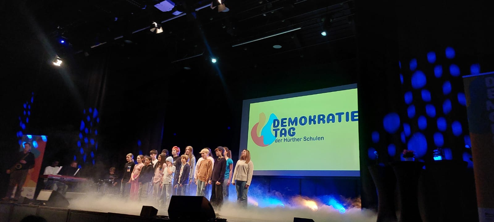 Am 5. November 2025 stand das Hürther Bürgerhaus ganz im Zeichen der Demokratie. Unter dem Motto „Wir machen Demokratie sichtbar“ und „Meine Demokratie – Deine Demokratie“ feierten rund 350 Schülerinnen und Schüler aus den sechs weiterführenden Schulen einen gemeinsamen Demokratietag der Hürther Schulen – ein Tag voller Kreativität, Begegnung und Mitgestaltung.