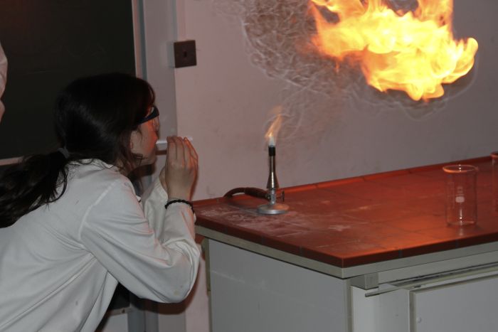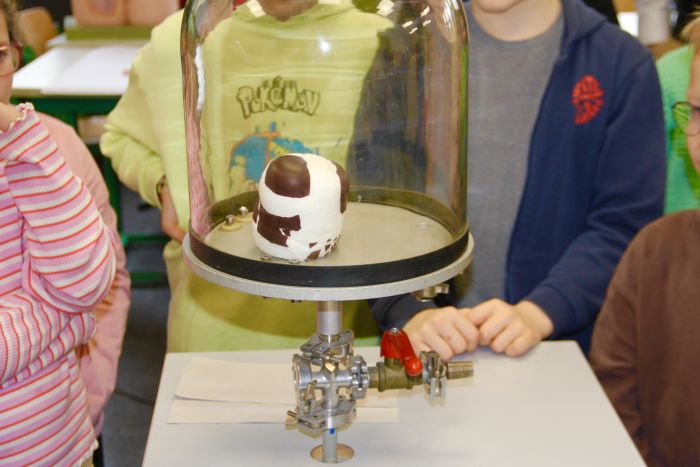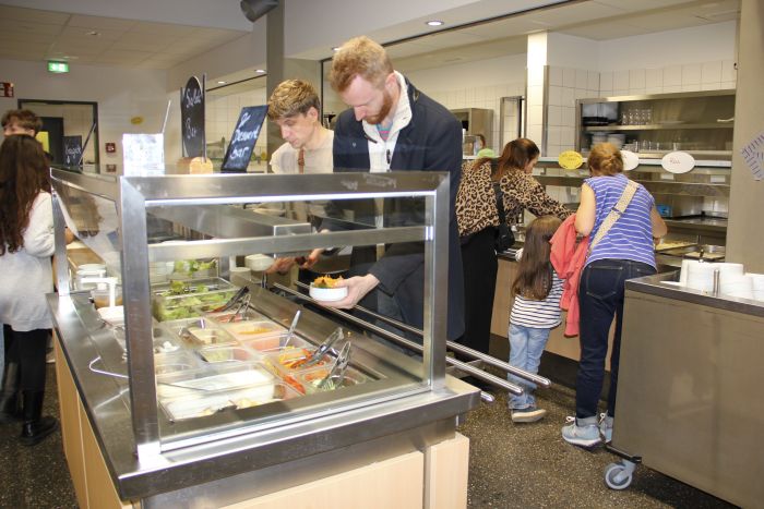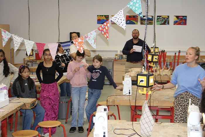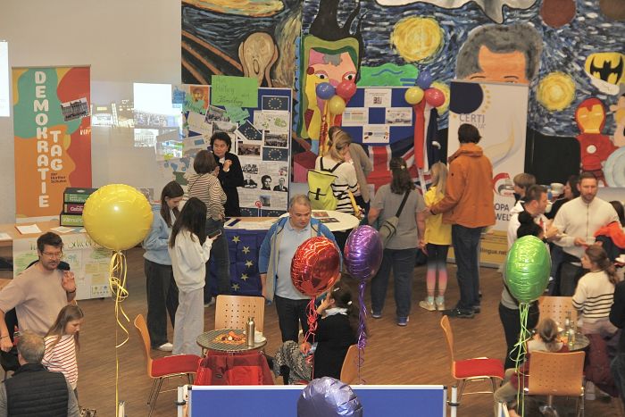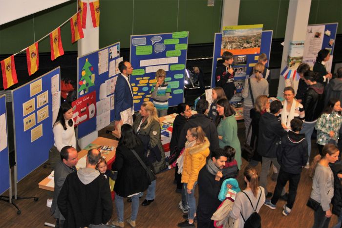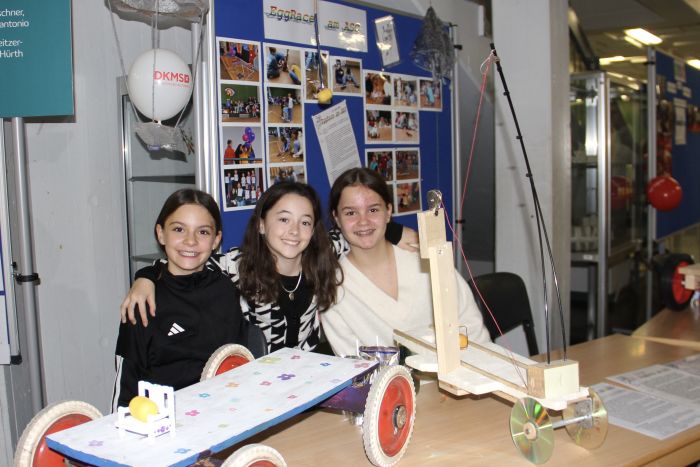 Schule bedeutet ja in erster Linie Unterricht. Deshalb konnten die Grundschulkinder natürlich auch einen Blick in die Klassenzimmer werfen und dort an Unterrichtsstunden teilnehmen. Für alle, die noch mehr Informationen bekommen und Eindrücke gewinnen wollten, gab es Schulführungen. Dabei erhielten die Gäste Zugang zu weiteren Räumen und Bereichen, darunter die Nachmittagsbetreuung, den Schulgarten und die Mensa, wo sogar ein kostenloses Probeessen eingenommen werden konnte. In den Fachräumen der Naturwissenschaften führten Schülerinnen und Schüler verblüffende Experimente durch, im Werkraum konnte man u.a. Produkte eines Nähkurses bestaunen und der deutsch-spanisch bilinguale Zweig informierte detailliert über alles, was mit diesem Schwerpunkt zu tun hat.