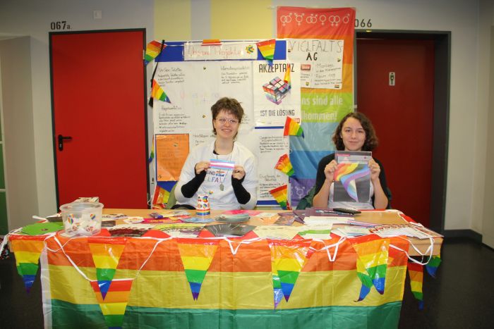 Schulleiter Herr Jürgensen-Engl und Stellvertreter Herr Ropohl versprachen bei der Begrüßung in der aufwändig hergerichteten Aula nicht zu viel und wiesen auf die Stände und Aktionen hin, die Lehrerinnen und Lehrer, Schülerinnen und Schüler sowie Eltern und andere Mitglieder der Schulgemeinde vorbereitet hatten. So empfing die Gäste bereits im Foyer eine Fülle an Projekten und Fachbereichen, die sich an attraktiven Ständen in Szene setzten. Angefangen von der Kunst, an der Kinder mit Farben und Pinsel auch selber mitwirken konnten, über den Sport und die Musik, hin zu Projekten wie „Schule der Vielfalt“, „Schulgartengestaltung“, „Medienpatenprojekt“, dem kreativen Wettbewerb „EggRace“ und vielem mehr. Auch der deutsch-spanisch bilinguale Zweig des ASG war mit mehreren Ständen vertreten und informierte anschaulich über diesen Schwerpunkt.