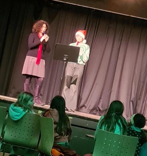 In der vergangenen Woche überraschte Lam aus der 8s mit virtuosem Jojo-Spiel, das er passend zu Musik zeigte. Elias beeindruckte bei beiden Vorführungen mit seinen Zauberkünsten das Publikum, das er geschickt und sympathisch mit einzubeziehen verstand. Schließlich wurde die junge Zuhörerschaft mit vier Weihnachtsliedern, gespielt vom Blockflötenduett Uljana/Frau Spielmans, auf die beginnende Adventszeit eingestimmt. „So schön kann Blockflöte klingen“, bemerkte Aurelia, bevor sie als Moderatorin die Veranstaltung beschloss.