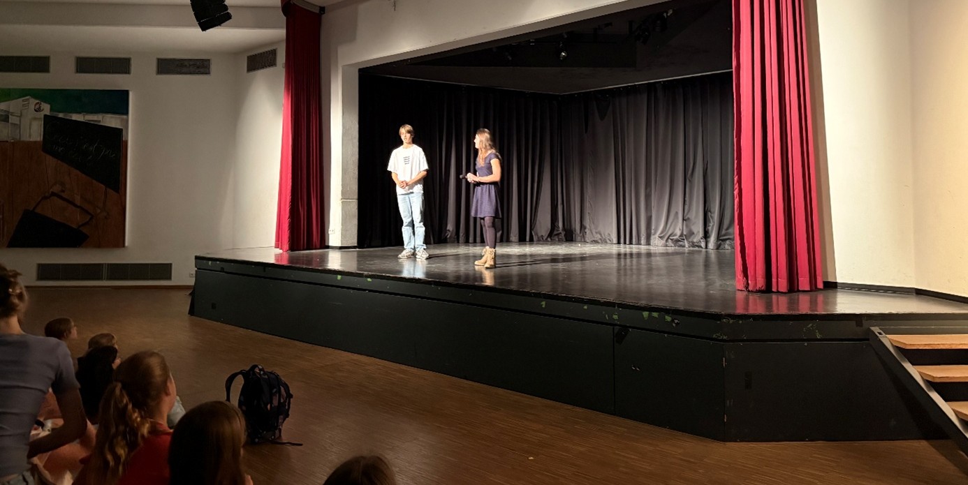 In diesem Schuljahr haben wir die open stages erfolgreich wieder aufgenommen. Organisiert von Uljana (EF) Elias (10s) und Aurelia (9a) konnten einige junge Künstler entdeckt werden und interessierte Schülerinnen und Schüler wurden in der Mittagspause wunderbar unterhalten.