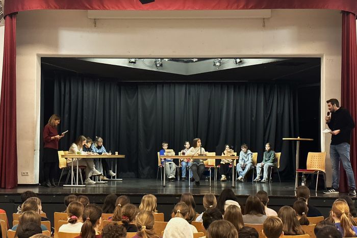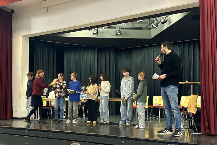 Am 10. Dezember 2025 fand in der Aula der Vorlesewettbewerb der Stufe 6 statt. In den Deutschstunden zuvor hatten alle 6. Klassen jeweils einen kleinen Klassenwettbewerb durchgeführt, um ihre Klassensiegerinnen und Klassensieger für das Schulfinale zu ermitteln.