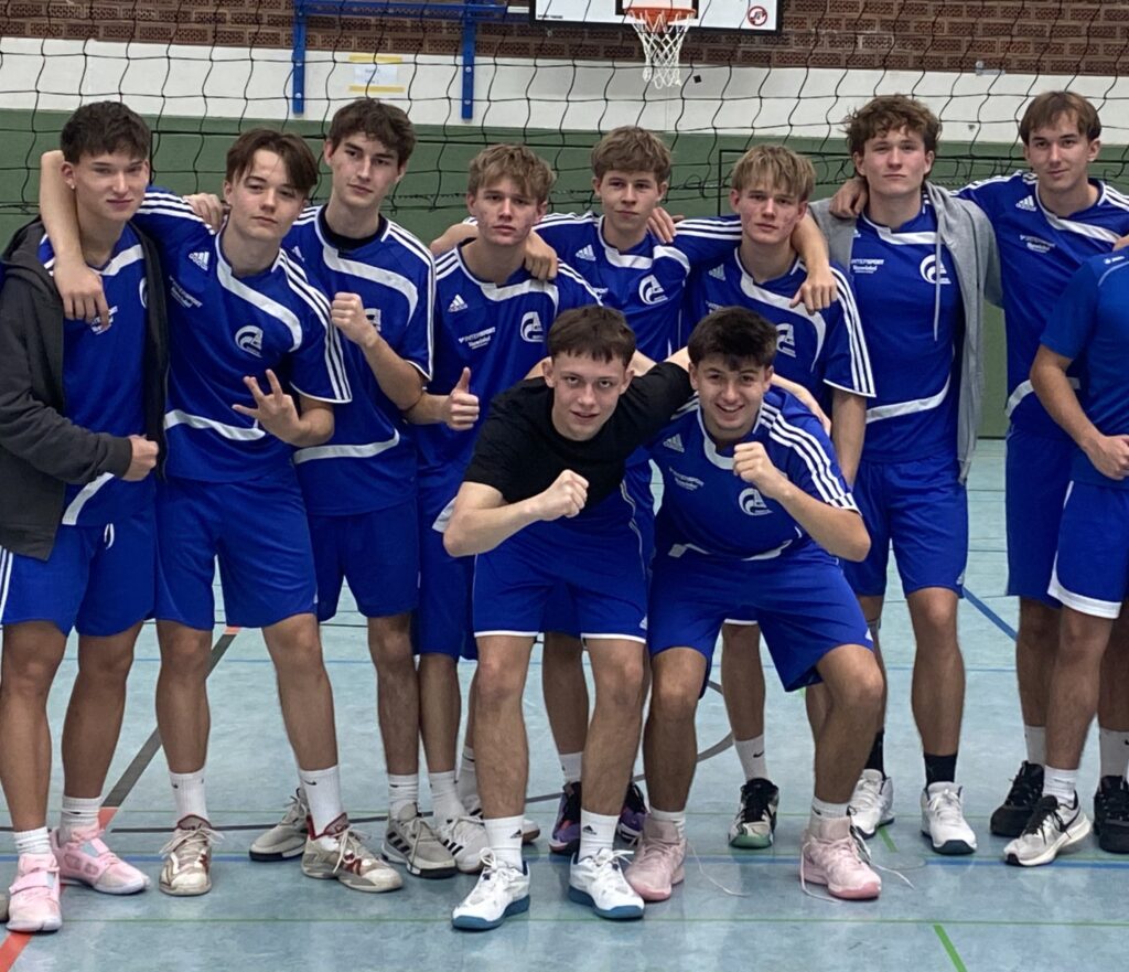 Die Jungs hatten sich in den ersten beiden Spielen ohne Satzverlust durchgesetzt und dabei souveräne Siege gegen das EMG Hürth sowie das Max Ernst Gymnasium Brühl erzielt. Sie waren damit fürs Finale beim Abtei-Gymnasium in Brauweiler/Pulheim qualifiziert und behielten auch in diesem Endspiel eine „weiße Weste“. In der Crunchtime des ersten Satzes behielten die Jungs die Nerven und setzten sich mit 25:23 durch. Beflügelt durch den Gewinn des ersten Satzes behielten sie im 2. Satz von Beginn an die Oberhand und gewannen diesen souverän mit 25:17. Auf der anschließenden Heimfahrt wurde der Finalsieg gebührend gefeiert!