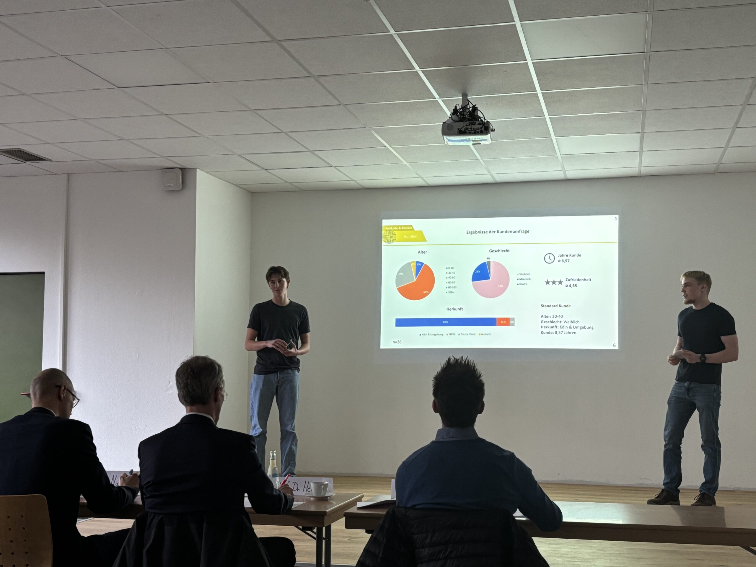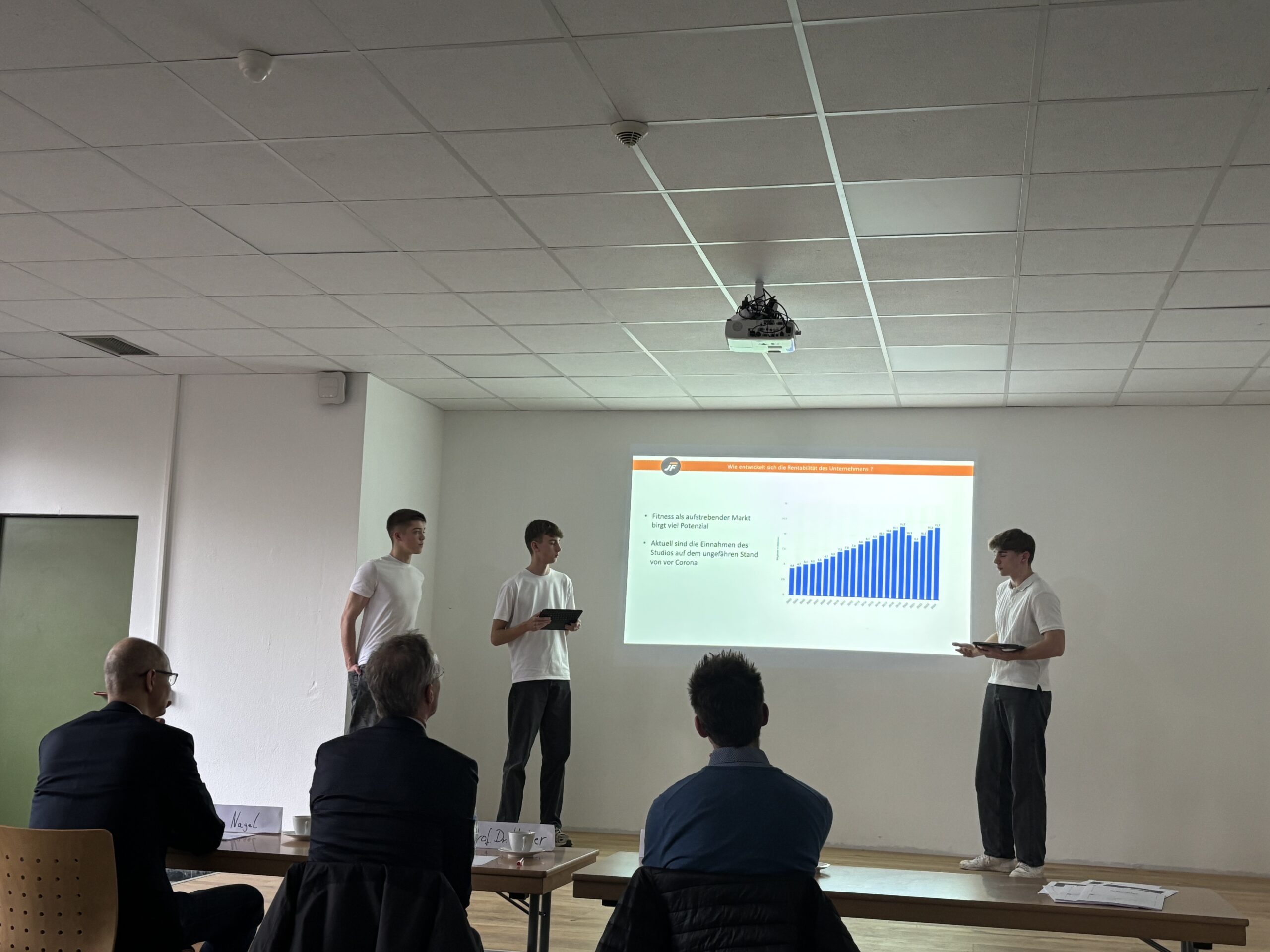 Im Anschluss stellten sich die Teams dann den Fragen der Jury. Diese bestand aus Herrn Prof. Dr. Heitzer – Professor an der Hochschule für Finanzwirtschaft & Management, Herrn Nagel – Unternehmensberater sowie Herrn Reilbach – Ford. An dieser Stelle ein herzliches Dankeschön an die Jury für sehr passende und freundlich gestellte fachliche Nachfragen an unsere Teams!