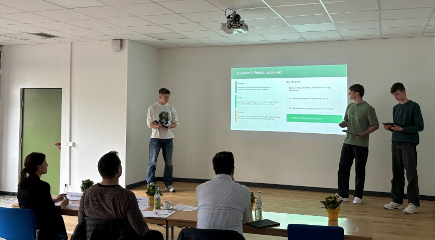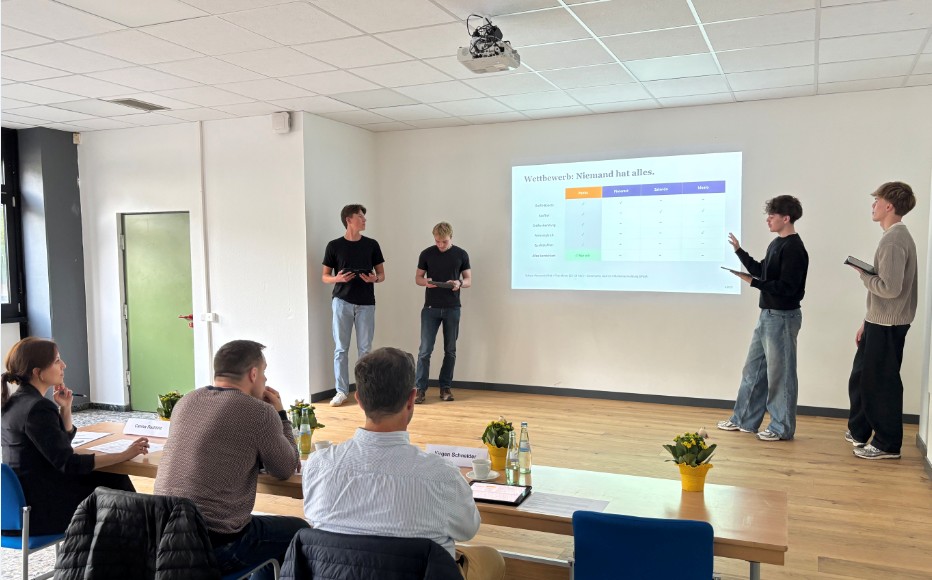 In einem Pitch vor einer fachkundigen Jury stellten die beiden Schülerteams Threeconomy und Fourvision ihre Geschäftsideen vor, an denen sie in den vergangenen Monaten intensiv gearbeitet hatten.