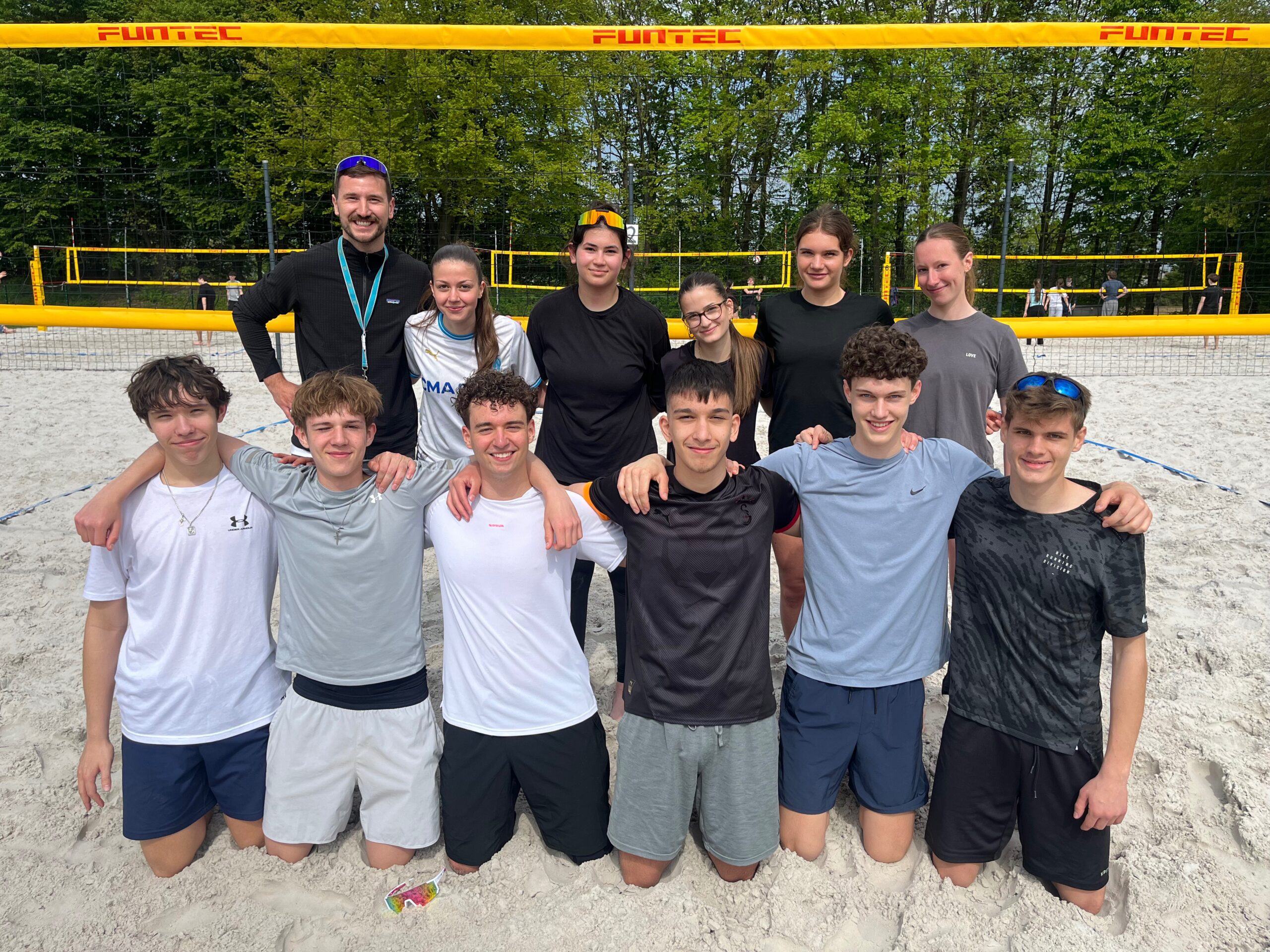 Am 21.04.2026 fanden am ASG auf den Plätzen der Beachbase die Beachvolleyball-Kreismeisterschaften (U18) statt.  Unsere ASG-Beachvolleyballer:innen traten bei sonnigem Wetter und guter Laune gegen das Abtei-Gymnasium Brauweiler, das Max-Ernst-Gymnasium Brühl und die Hürther Gesamtschule an. Gespielt wurde parallel auf sechs Feldern mit Damen, Herren und Mixed-Teams. Im Finale ging es dann darum sich mit Teamgeist und Können gegen unseren Nachbarn der Gesamtschule durchzusetzen. Am Ende konnten alle Partien gewonnen und der Sieg nach Hause geholt werden.