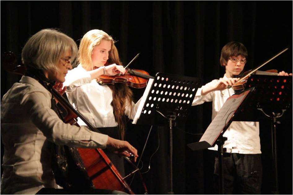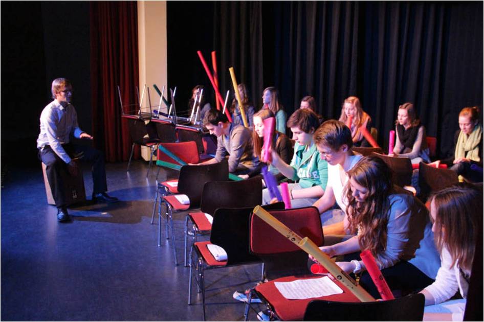 Es waren erfreulich viele und sehr unterschiedliche Ensembles zu sehen und zu hören: Außer Chören, Big Band und Bläserklassen überzeugte die 9s mit einer Boomwhacker-Performance über Katy Perrys „E.T.“ – in großem Teamspiel bekam jeder Schüler einen oder zwei Töne, die er (oder sie) genau zur richtigen Zeit spielen musste. Und es funktionierte!