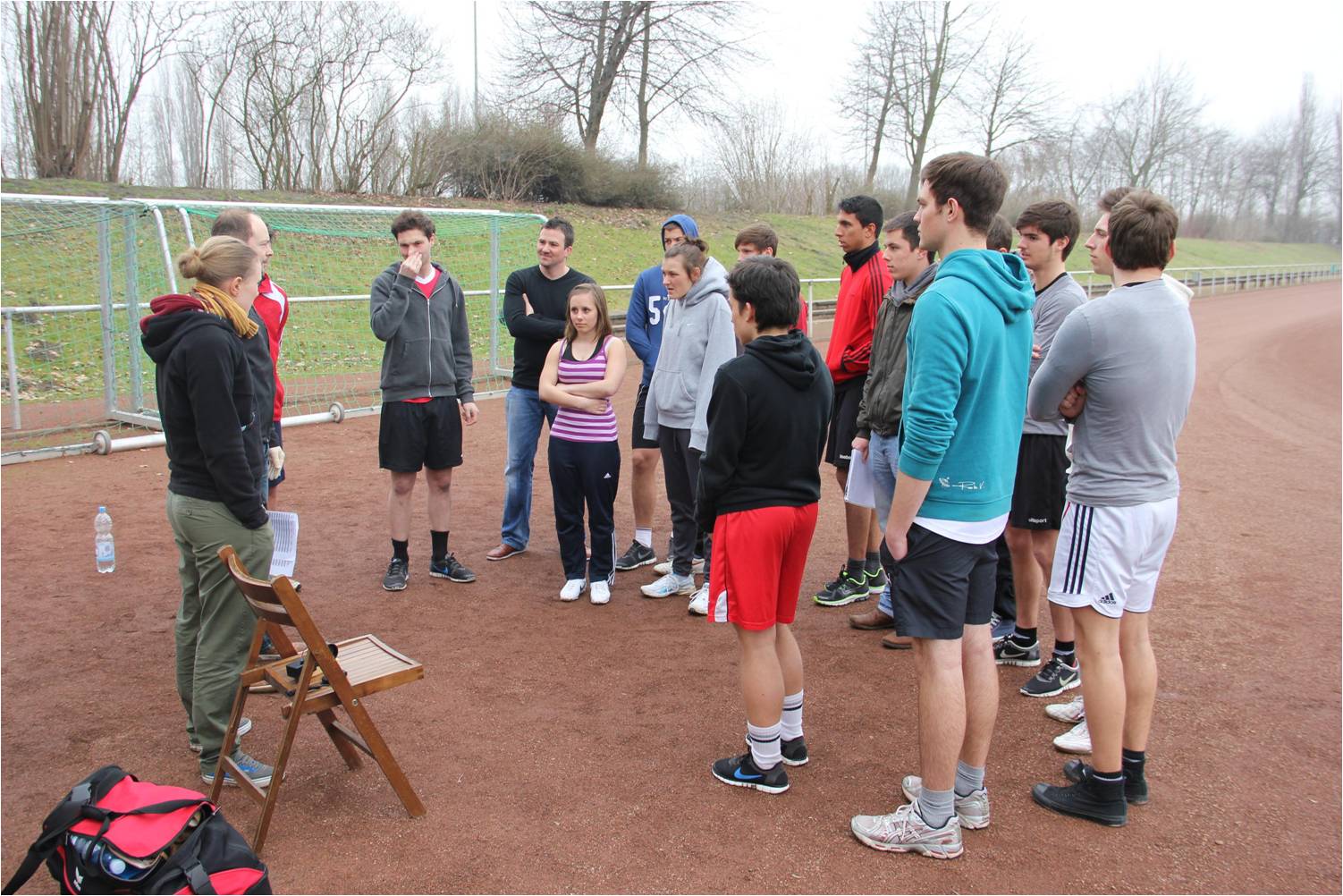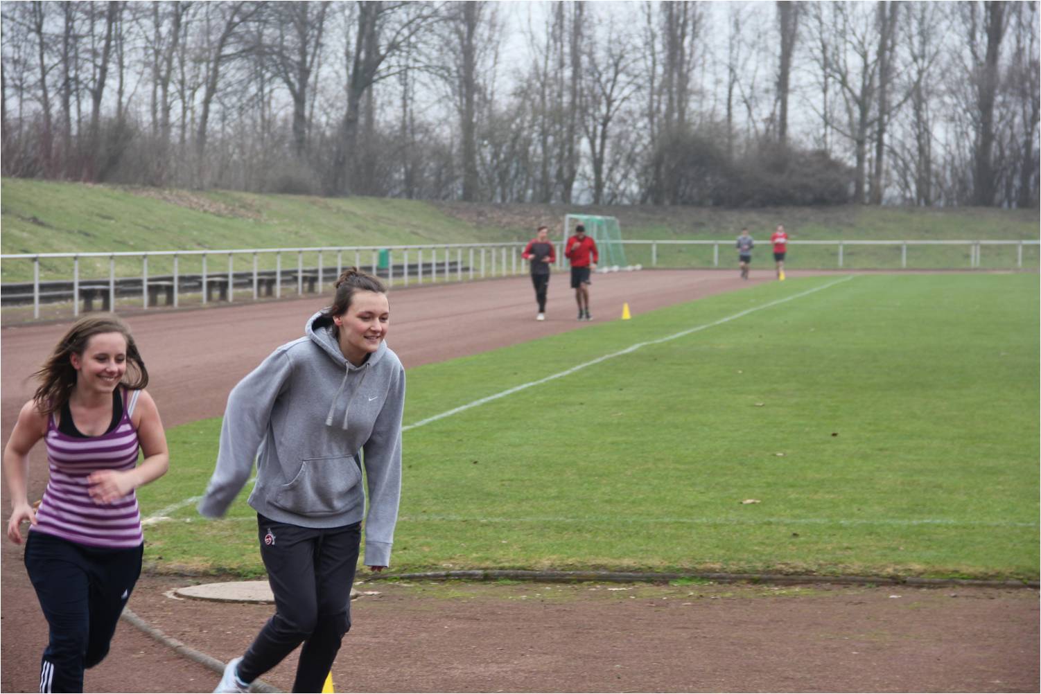 Der Kurs hatte sich vorab für die Variante des Feldstufentests entschieden. Hier können auf der 400 m Rundbahn mehrere Personen gleichzeitig getestet werden. Im Labor würde man den Test auf dem Laufband in Kombination mit einer Atemanalyse (Spiroergometrie) absolvieren.