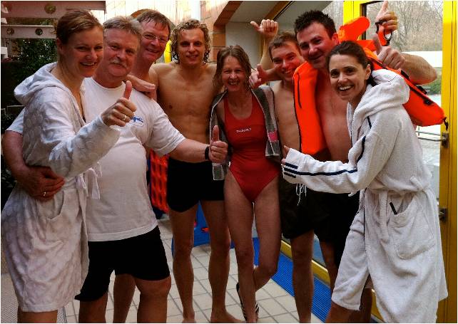 An zwei Samstagen im März stiegen nun die Sportlehrer des ASG wieder selbst ins Wasser um das DLRG-Silber-Abzeichen unter der Leitung von Herrn Aretz zu erneuern.