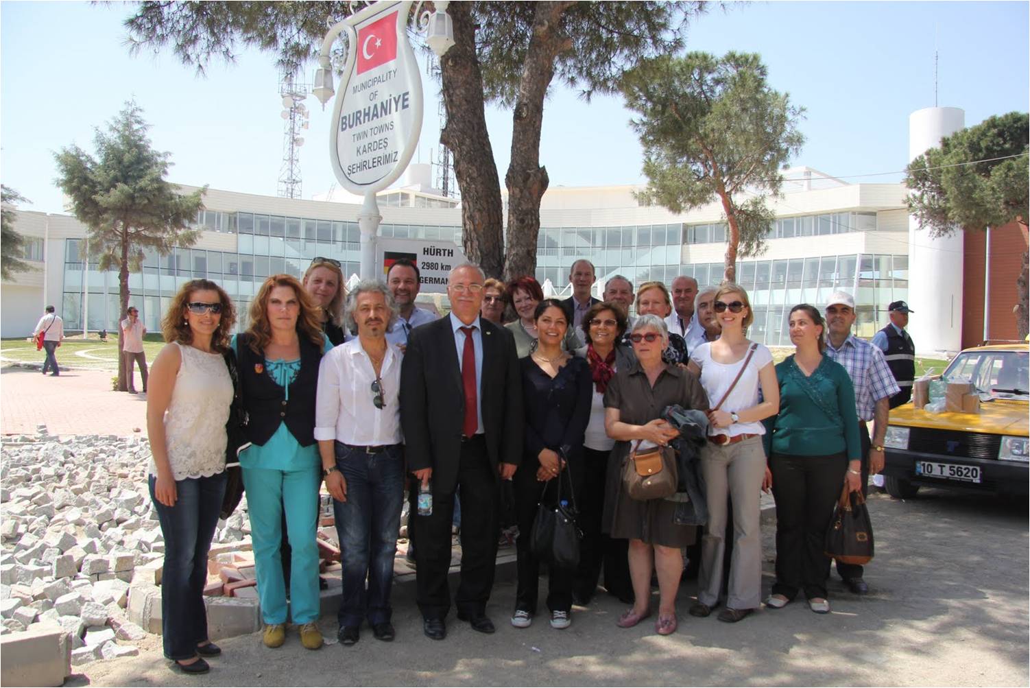 Am 26. April 2012 machte sich eine Delegation aus Hürth, bestehend aus Mitgliedern des Partnerschaftsvereins und jeweils einer Lehrkraft des ASG und des EMG, auf die Reise nach Burhaniye, der neuen Partnerstadt Hürths in der Türkei. Der Gruppe wurde ein umfangreiches Besichtigungs- und Kulturprogramm geboten, so dass sich alle nicht nur von dem Reiz der Region und der Gastfreundschaft ihrer Bewohner, sondern auch von der engagierten Arbeit in Jugend- und Kulturzentren überzeugen konnten. Aufbauend auf den Freundschaften, die in dieser Begegnung geschlossen wurden, ist es nun wünschenswert, dass auch Jugendliche von der Verbindung beider Städte profitieren können. Zu diesem Zweck versuchen wir, eine Schulpartnerschaft mit einem Gymnasium in Burhaniye einzugehen.