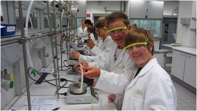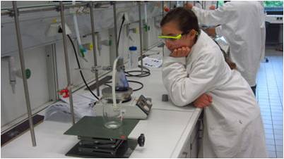 Danach haben wir uns weiße Kittel und Schutzbrillen angezogen und durften endlich ins Labor. Im Labor hat uns der Projektleiter Alex die Regeln und Sicherheitsmaßnahmen erklärt. Dann durften wir endlich selber experimentieren.