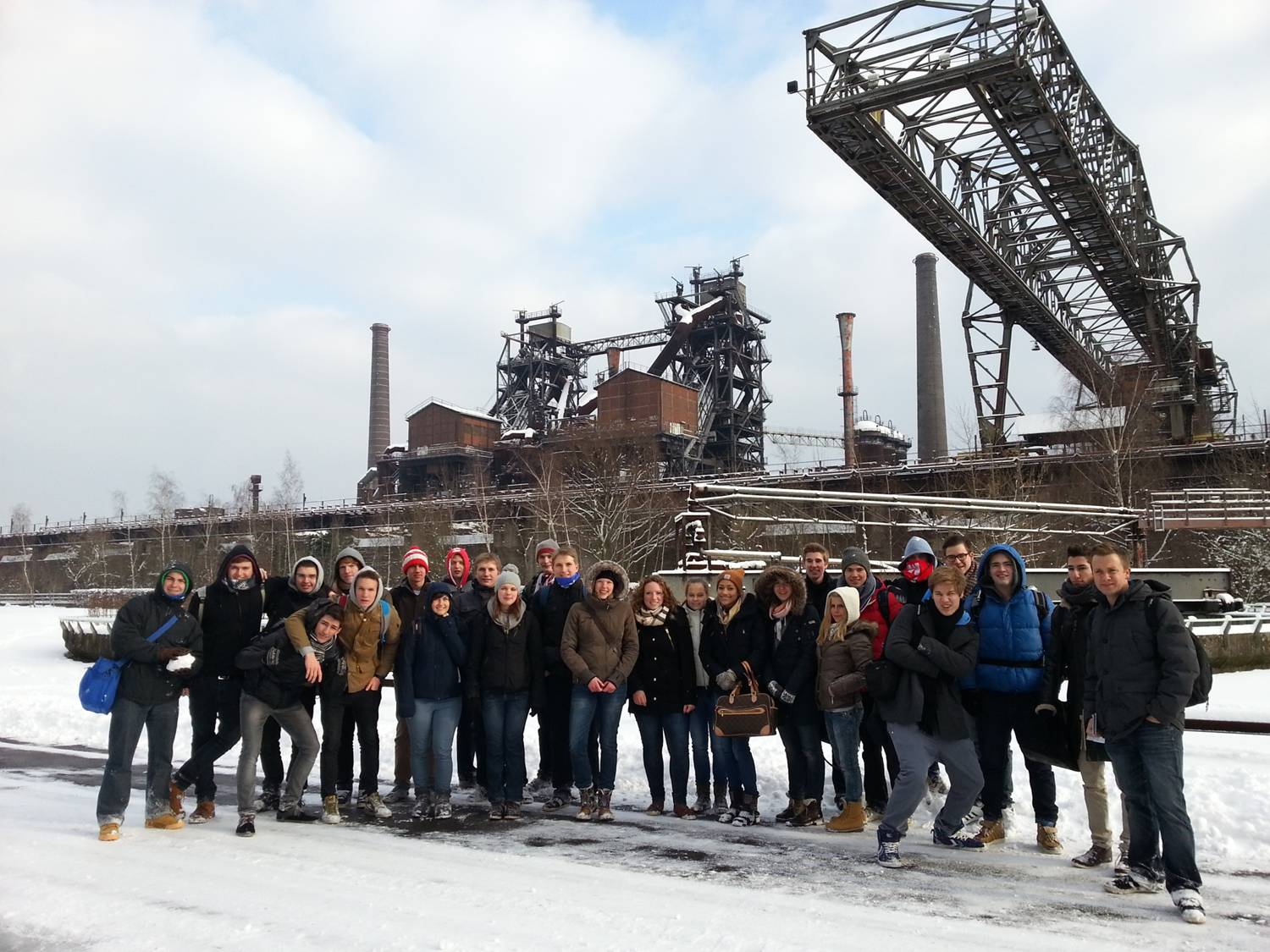 ...hieß es für die 27 Schülerinnen und Schüler der Erdkundeleistungskurse von Herrn Spießer und Herrn Novy. Unter der Fragestellung eines nachhaltigen Strukturwandels wurden in einer längeren Arbeitsexkursion gleich mehrere Standorte untersucht: Durch eine Kartierung im verlassenen Stadtviertel Duisburg-Bruckhausen, einer Rollenexkursion im Landschaftspark Nord und einer Vergleichsanalyse in der Gartenstadt Essen-Margarethenhöhe wurde den Schülerinnen und Schülern die Vielfalt des Ruhrgebiets verdeutlicht. Als Höhepunkt wurde die Fahrt durch eine mehrstündige Führung durch die Zeche Zollverein abgerundet.