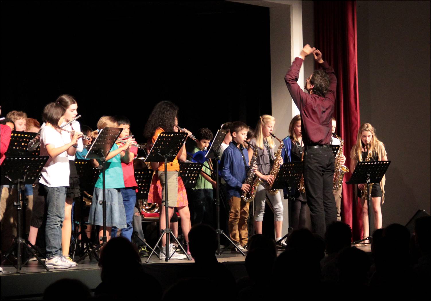 Ein fröhliches „Gaudeamus“ der Singeklassen 5 eröffnete das zweite Schulkonzert dieses Schuljahrs. Das heißt: „Freuen wir uns!“ und freuen konnten sich die Zuhörer des Konzerts nicht nur über die frisch und sauber intonierenden Singeklassen, sondern auch über die Nachwuchsbläser aus der gleichen Stufe (Premiere beim Schulkonzert für die 39 Kinder), den Lehrerchor (u.a. mit dem Kölschen Stammbaum von den Bläck Fööss) und Stammgäste wie Big Band und Chor.