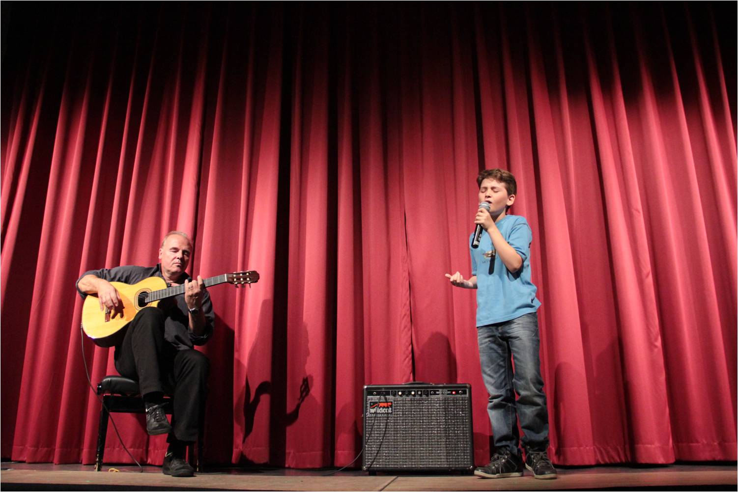 Auch kleinere Besetzungen traten auf: Nicolas Földes aus der 6c sang sich mit Witz in die Herzen der Zuhörer, als er davon träumte, was er alles machen würde, „Wenn ich Schuldirektor wär“ – diese Bewerbung nahm Herr Fischer in seiner Abschlussrede dann auch gern an.