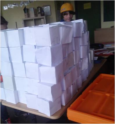 Der Ehrgeiz war groß, doch schnell stellte sich heraus, dass es bei 25 Kindern in der Klasse doch ganz schön viel Arbeit war, jeden 40 kleine Würfel herstellen zu lassen.