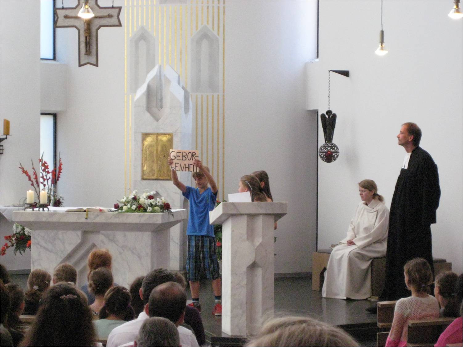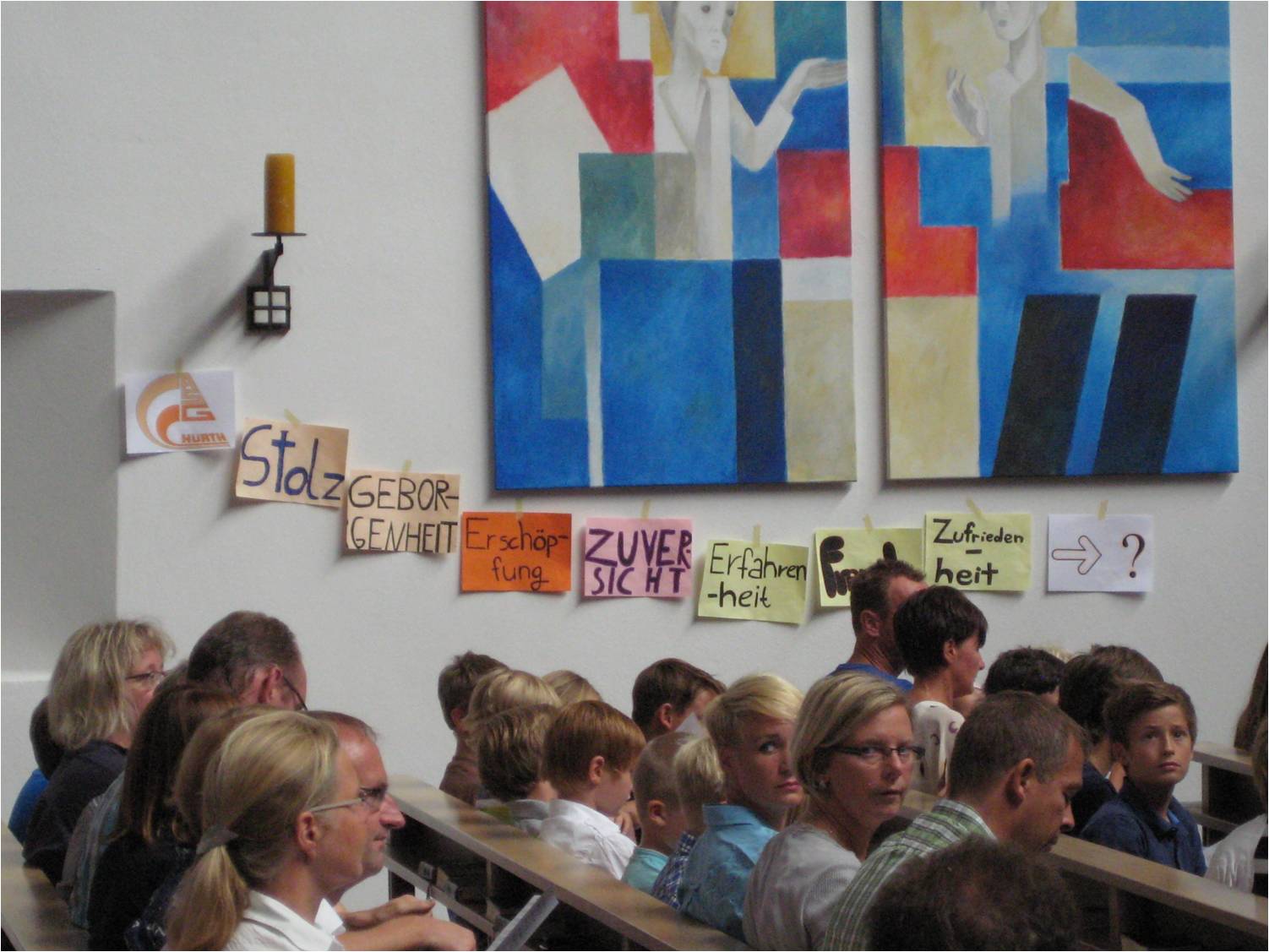 „Vor einem Jahr waren wir ganz aufgeregt und hatten auch etwas Angst, beispielsweise vor dem großen neuen Gebäude“, formulierten Schüler der jetzigen Stufe 6 beim Einschulungsgottesdienst - Schüler, die vor einem Jahr an gleicher Stelle eingeschult wurden. Sie beschrieben dann auch die neuen Wege, die sie in ihrem ersten Schuljahr begehen konnten – es waren unter anderem Wege der Zufriedenheit und des Stolzes. In diesem Sinne wünschten die Sechsklässler unseren „Neuen“ alles Gute für den Start und machten ihnen Mut.