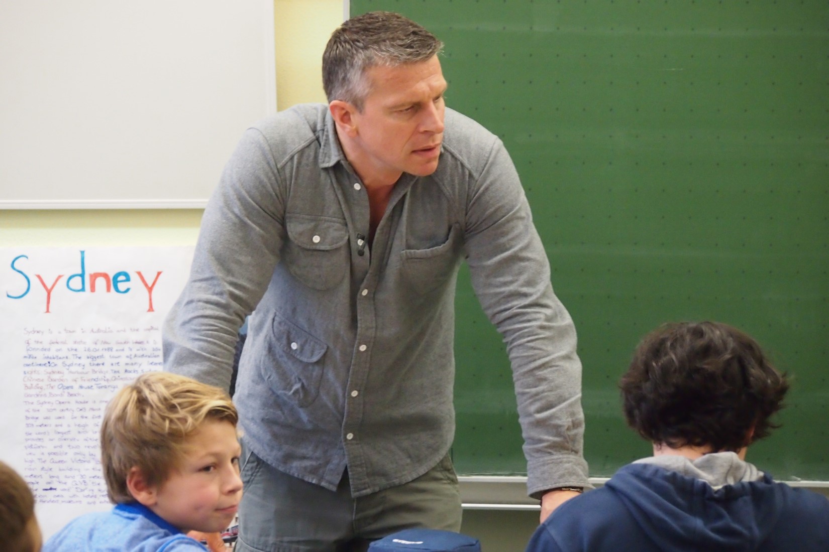Alles begann um 10 Uhr nach der 2. Stunde. Herr Heinrichs – ein Schauspieler und Experte zum Thema Mobbing (www.sprache-gegen-gewalt.de) – stellte sich der Klasse vor. „Was versteht ihr unter Mobbing?“, „Was ist respektvoller Umgang miteinander?“, „Wann fühlst du dich nicht wohl?“, … Fragen, über die Herr Heinrichs mit den Kindern der Klasse 6a ins Gespräch kam. Es baute sich schnell ein vertrauensvolles Verhältnis auf, so dass ein offenes Gespräch entstand, in dem die Schüler viele Fragen stellen konnten.