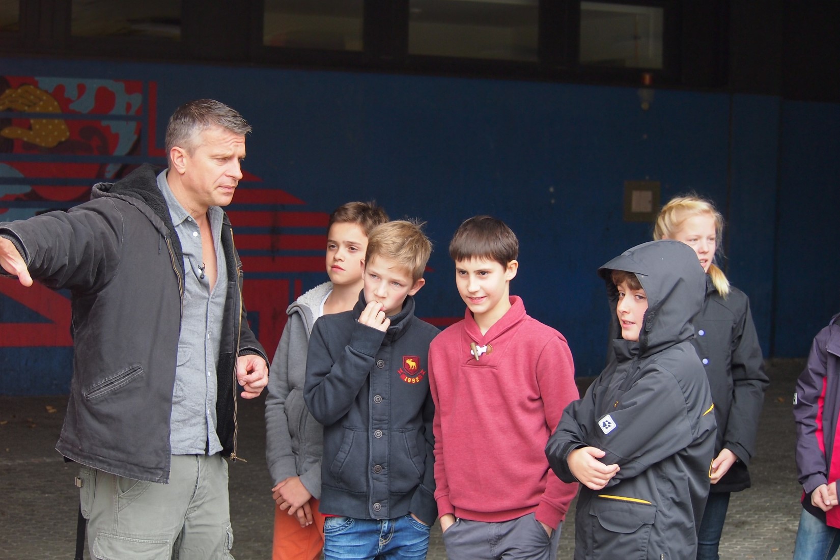 Dann wurden alle stark gefordert: „Was sind für euch typische Szenen bzw. Geschichten, in denen ihr euch nicht wohl fühlt und wo man auch von Mobbing sprechen kann?“ – So formulierte Herr Heinrichs einen Auftrag, woraufhin sich Kleingruppen von 4 bi 6 Schülern kurze Geschichten überlegten, von denen wir zwei drehen konnten, was allen sehr viel Spaß machte. So entstand unter anderem ein Film auf dem Schulhof, wo ein Schüler von den anderen missachtet und ausgegrenzt wird. „Durch dieses Vorgehen findet ein Perspektivwechsel bei den Kindern statt und sie verstehen auch die Rolle des Opfers“, so die Analyse des Experten.
