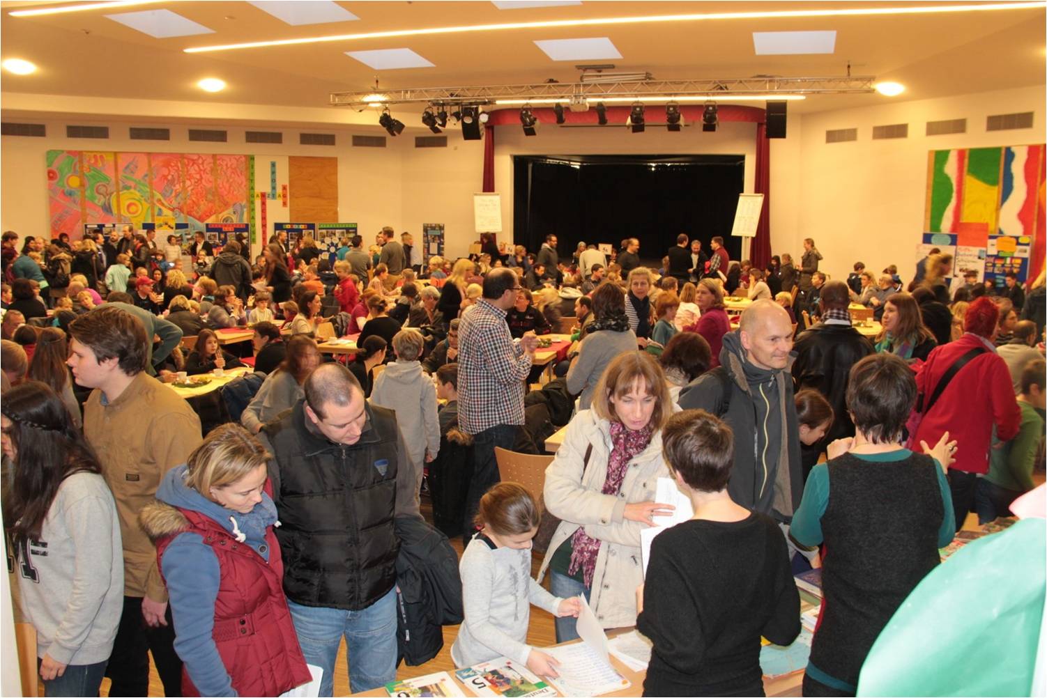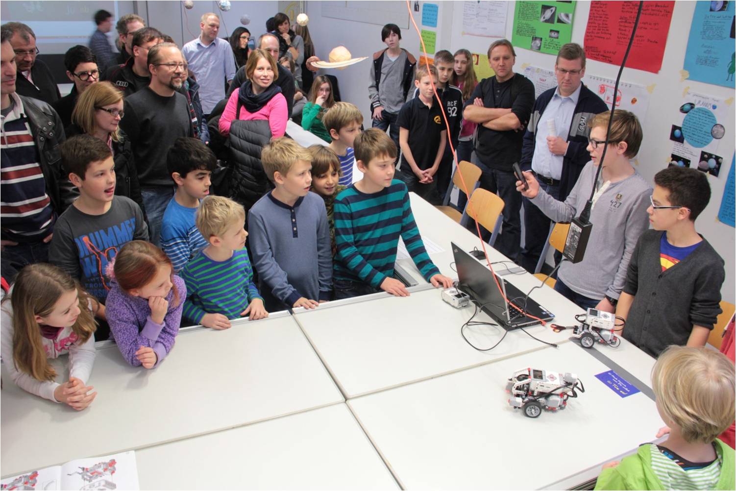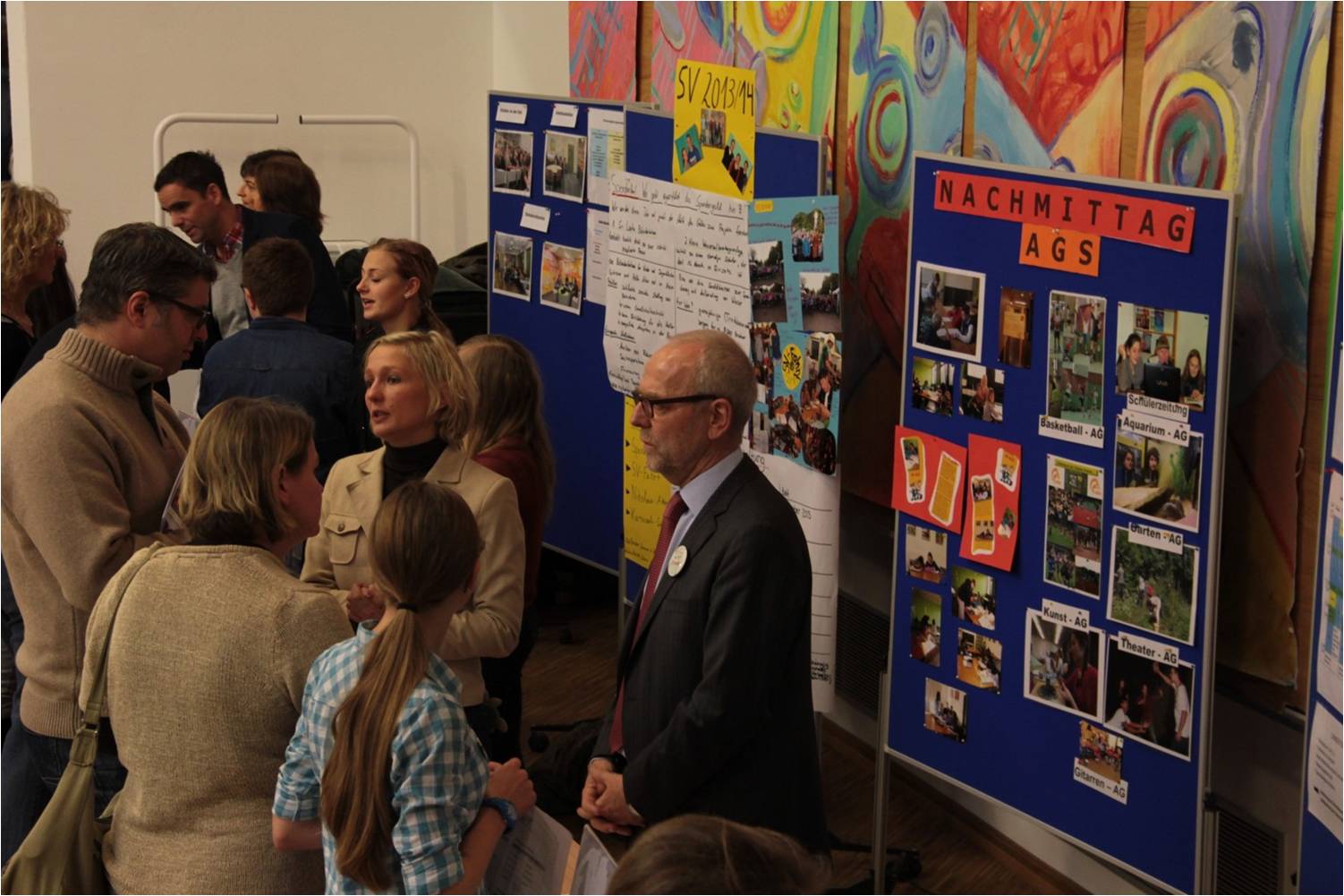 „Lebendige Schule erleben und Informationen erhalten“ – unter diesem Motto stand der Tag der offenen Tür am 14.12. – und unsere Gäste nutzten die Chance, sich einen tieferen Einblick in unser Schulleben zu verschaffen. An den vielfältigen Ständen zu den einzelnen Fachbereichen, zur Arbeit der Schüler- und Elternvertretung sowie zu einzelnen Unterrichtsergebnissen und -projekten gaben Schüler, Eltern und unsere Kollegen umfangreiche Auskünfte. Darüber hinaus boten die Führungen durch das Gebäude mit Vorträgen oder auch Experimentiereinlagen einen guten Überblick, was unsere Schule alles zu bieten hat. „Ihr Angebot ist überwältigend!“, fasste eine Mutter ihre Eindrücke zusammen, „vor allem auch, dass so viele Schüler beteiligt sind.“ „Das was Sie am Informationsabend über die Möglichkeiten Ihrer Schule berichten, leben Sie auch,“ kommentierten Eltern eines Schülers unser jetzigen Stufe 7. Solche Rückmeldungen zu erhalten, macht uns als Schule sehr stolz!!