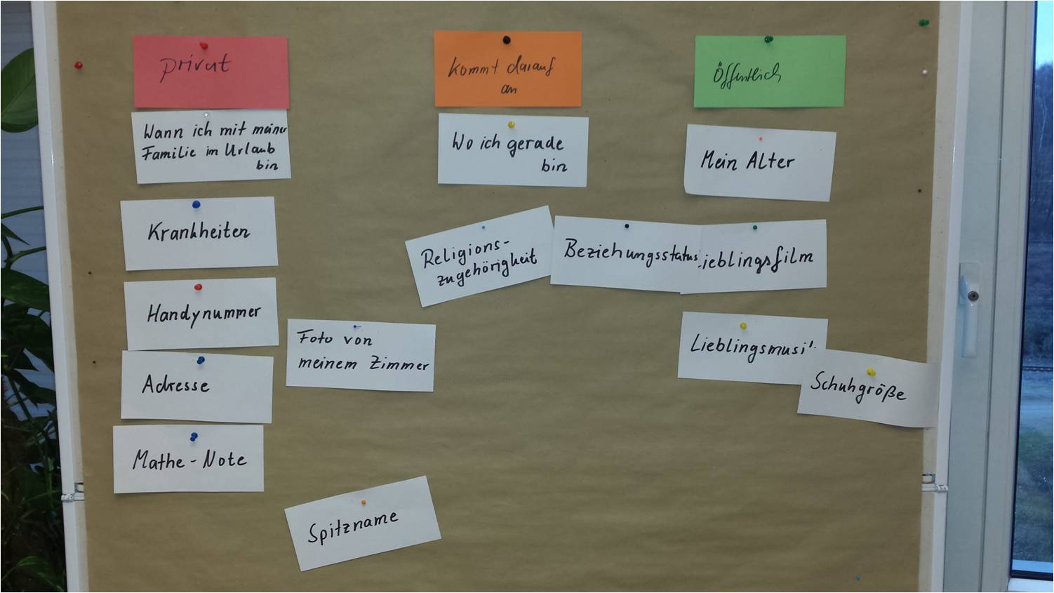 (1) ein Gefühl dafür zu bekommen, was privat und was öffentlich bedeutet bzw. welche Informationen man öffentlich machen sollte und welche nicht; Umgang mit WhatsApp: Was ist nervig / störend?