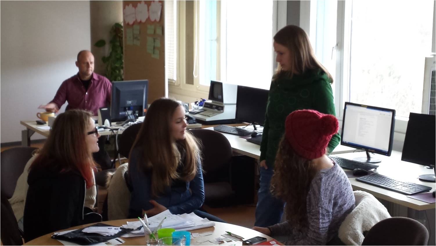 An vier Tagen im Januar / Februar 2014 wurde die Gruppe durch Herrn Welsch (Experte/Medienpädagoge) von der Stiftung Jugend und Medien im MediaPark in Köln zum Thema „Sicher im Umgang mit Medien – im social web“ ausgebildet (s.a. http://www.sk-jugend.de/paedagoginnen/ netzfreunde-sensibel-im-social-web-projekt.html). Dabei ging es darum, die Schüler der 9. Klassen so auszubilden und vorzubereiten, dass sie in 3er-Gruppen die erlernten Inhalte allen Schülern der Klasse 6 (in diesem Jahrgang sind es sechs Klassen) in drei bis vier Doppelstunden vermitteln können. Neben dem Weitergeben der Inhalte sollen so auch Patenschaften des Vertrauens entstehen.
