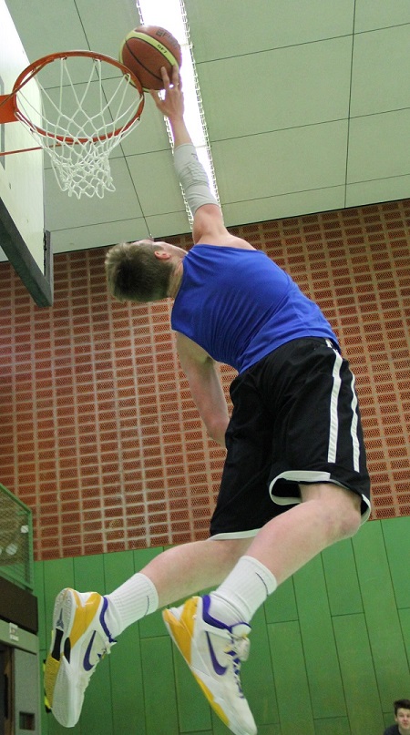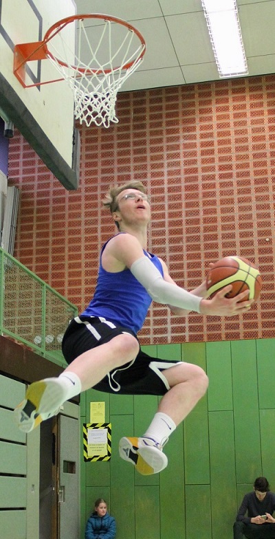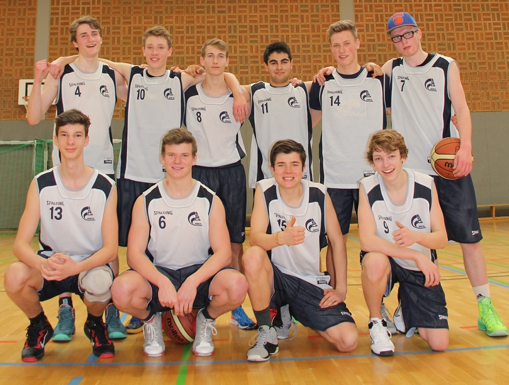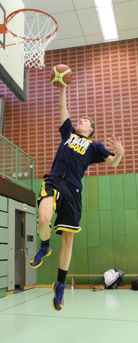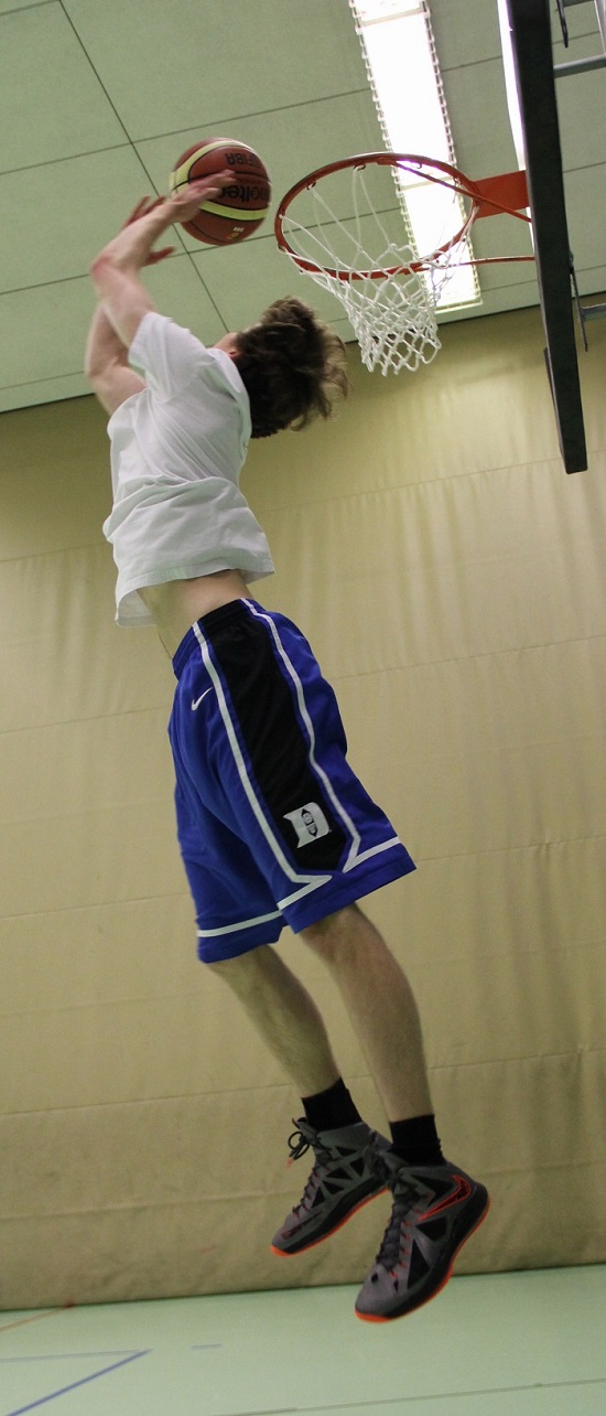 0 zu 9 nach vier Spielminuten – schlechter hätte das Kreisfinale in Bedburg für die Wettkampfmannschaft I. (Jahrgänge 1994 u. jünger) unserer Schule nicht beginnen können. Viele Teams hätten jetzt vermutlich mit hängenden Köpfen ein Debakel erlitten, aber nicht diese Mannschaft aus turnier- und kampferprobten ASG-Basketballhelden. So mancher Pokal aus den Vitrinen unserer Schule geht schon auf das Konto einiger aus dieser Truppe und sie sollte den Gastgebern vom Silverberg-Gymnasium statt eines Freifahrtsscheins zum Kreistitel ein packendes Kampfspiel auf des Messers Schneide liefern…