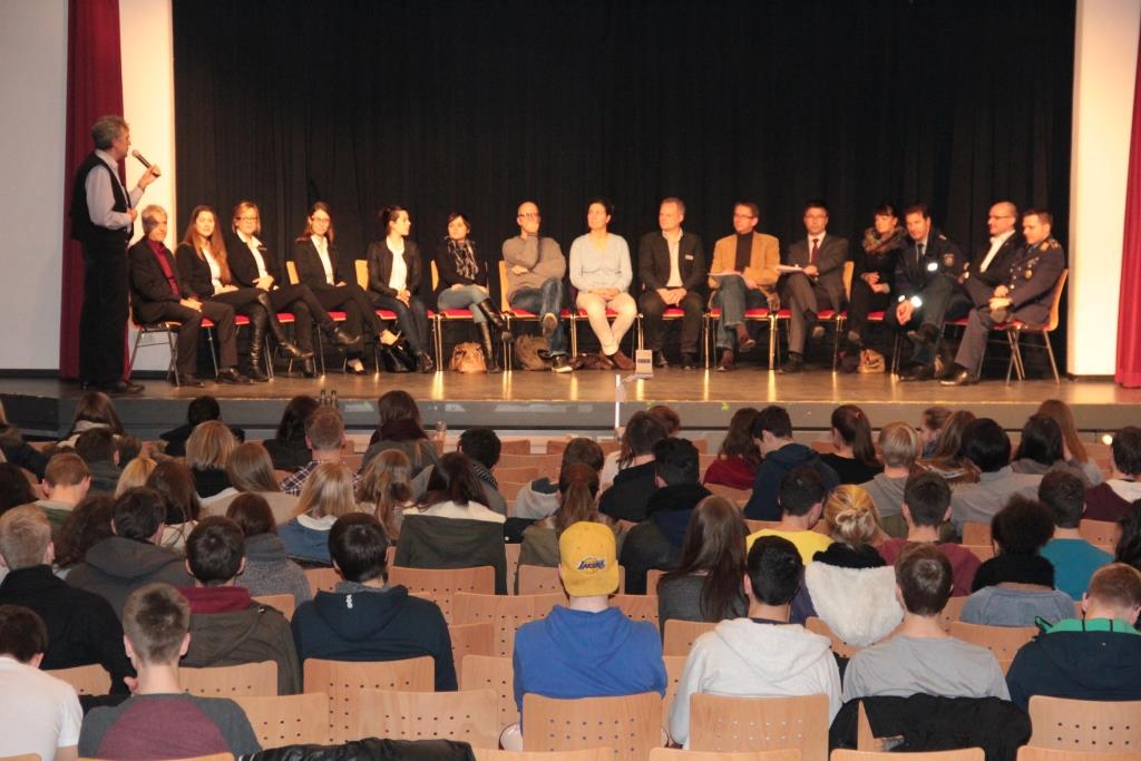 | Herr vom Hövel von der Arbeitsagentur informiert über Ausbildung und Studium. | Im Plenum konnten sich Schülerinnen und Schüler entscheiden, über welchen Beruf sie genaue Informationen haben wollten. |