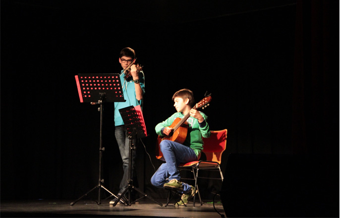 Und was für Soli und Gruppen zu hören waren! Auf durchweg hohem Niveau gab es vom Klavier – auch im Duett an zwei Flügeln von Simon und Niko Nowak – über virtuose Geigen- und Gitarrenmusik bis zum Boomwhacker-Ensemble eine faszinierende Bandbreite der Musikalität unserer Schülerinnen und Schüler zu hören.