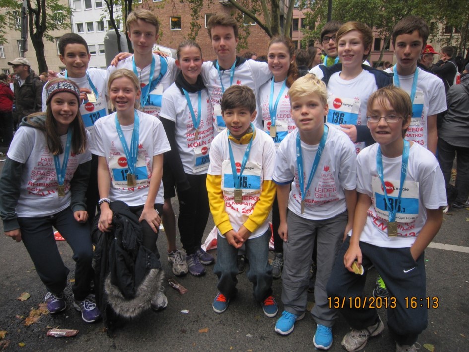 Jeweils sechs Schülerinnen und Schüler einer Staffel teilen sich die 42,195 Marathon-Kilometer, sodass jeder eine Etappe von entweder 5km, 7km oder 10km läuft.