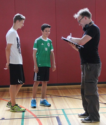 Kurz vor den verdienten Sommerferien erreichte unsere Schule eine Anfrage aus Köln: „Wir Studenten der ifs internationale filmschule köln produzieren gerade liebe- und hingebungsvoll einen 8-10-minütigen Kurzfilm, der in der Welt 14-Jähriger spielt. Dafür sind wir noch auf der Suche nach einer gemischten Schulklasse, Theater-AG oder einem Sportkurs mit Jugendlichen im Alter zwischen 12 und 16 Jahren, die in 2 maßgeblichen Szenen als Komparsen neben unseren Schauspielern agieren könnten. Da wir selbst noch Studenten sind, können wir leider nichts bezahlen, aber einen Einblick bieten in den Ablauf eines Filmdrehs. Außerdem darf Brennball gespielt werden und es gibt natürlich ein Catering!“ 11 Schülerinnen und Schüler der Klassen 8s und 7b des ASG zögerten nicht lange und investierten mit Zustimmung ihrer Eltern einen schulfreien Samstag für ein Stück praktischer Berufserfahrung.