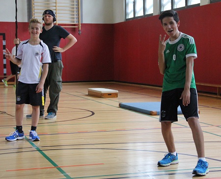 Dank Betreuer Sebastian, Austausch mit den jugendlichen Schauspielern, Sport- oder Talkgelegenheiten außerhalb des Sets, der guten Stimmung untereinander und insbesondere durch eine großzügige Anzahl frisch angelieferter Pizzen in der Mittagspause wussten sich unsere Schülerinnen und Schüler aber zu beschäftigten.