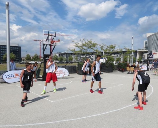 Nachdem unser Schulteam in der Altersklasse U16 in Recklinghausen bereits die NRW-Landesmeisterschaft erringen konnte, wurde es noch mit einer Einladung zur deutschen Meisterschaft, der „ING-DiBa 3x3 Open 2014“, ausgerichtet vom Deutschen Basketball Bund in Berlin, belohnt.