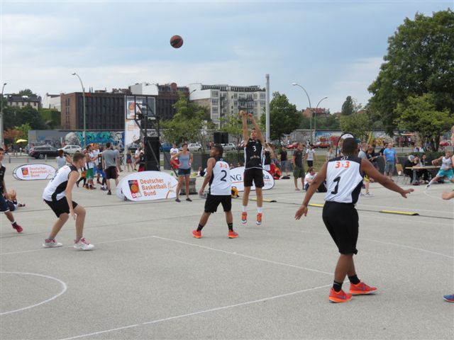 Das Turnier fand vor eindrucksvoller Kulisse vor der O2-World, mit Blick auf die East-Side-Gallery und die Spree statt. Gleich zu Turnierbeginn ging es gegen „Die derbsten Assis Digga“ aus Hamburg und beiden Teams war anzumerken, dass dieses Turnier mitten in den Schulferien und damit für viele auch mitten in einer Basketballpause stattfand. Nur schwer kamen beide Mannschaften ins Turnier und der Ball fand nur selten den Weg in den Korb. Am Ende gab es daher eine 8:4 Niederlage für unser Team.