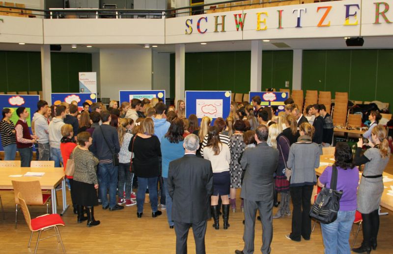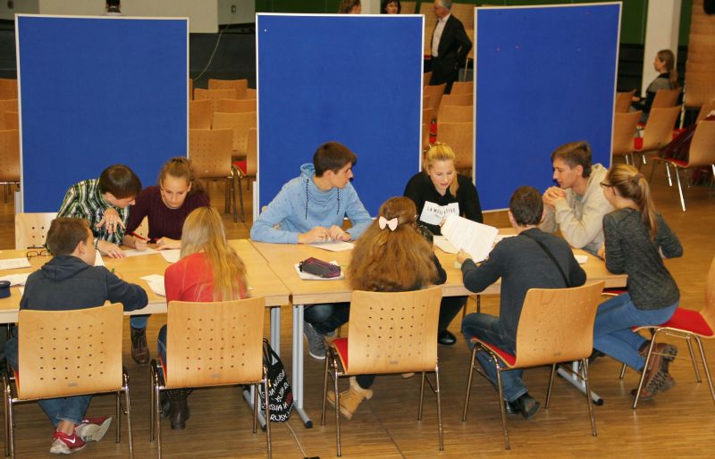 Am 18.11.2014 erlebten die Schüler der Klasse 9e mit Frau Langen einen Vormittag unter dem Thema „Ausbau der Zivilgesellschaften in den Ländern Ukraine, Georgien, Moldau und Belarus“. Gemeinsam mit Gastschülern aus diesen vier Ländern erarbeiteten die Schülerinnen und Schüler unterschiedliche Themen zum Aufbau und den Strukturen einer deutschen Schule in Workshops. Dabei ging es sowohl um das Schüler-Lehrer-Verhältnis, Schülervertretungen auf verschiedenen Ebenen, eigenverantwortliche Schülerinitiativen als auch die Entwicklung und Betreuung von Olympiaden und Wettbewerben. Die Schüler diskutierten diese Themen in gemischten Gruppen, wobei auch viele landesspezifische Vorgehensweisen und Eigenarten erklärt wurden. Die Ergebnisse erbrachten eine interessante Präsentation, die landesübergreifende Übereinstimmungen und Meinungen deutlich machte.