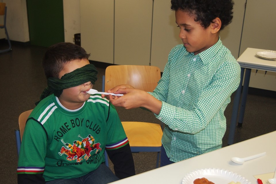 Herr Fischer begrüßte alle Gäste in der Aula unserer Schule und wünschte den Kindern viel Spaß bei der Arbeit als naturwissenschaftliche Forscher. Nachdem Frau Goost und Herr Jürgensen-Engl den näheren Ablauf erläuterten, konnte das Experimentieren auch schon beginnen. Die NIM-Gruppe der Stufe 9 hatte folgende neun Experimentthemen vorbereitet: „Wo ist das Spiegelbild?“, „Kaugummipapier und Feuermelder!“, „Der Heronbrunnen!“, „Der Puls!“, „Geschmack und Geruch!“, „Tatort“, „Die schwebende Kartoffel.“, „Weg oder nicht weg?“ und „Die chemische Zunge!“.