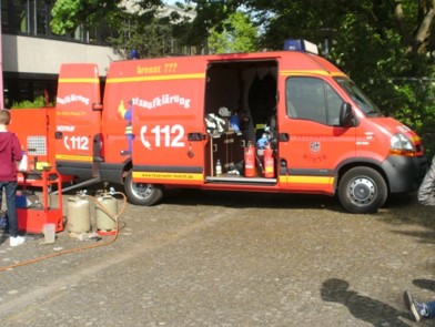Am Mittwoch und Donnerstag Ende April ließ es die Feuerwehr auf dem Schulhof des ASG kräftig knallen. Nachdem die sechsten Klassen in einem Brandschutzvortrag alles Wichtige über Brandschutzklassen, Bestandteile des Feuers, verschiedene Brandarten und die jeweils besten Methoden des Löschens der unterschiedlichen Feuer erfahren hatten, ging die Brandschutzaufklärung praktisch auf dem Schulhof weiter.
