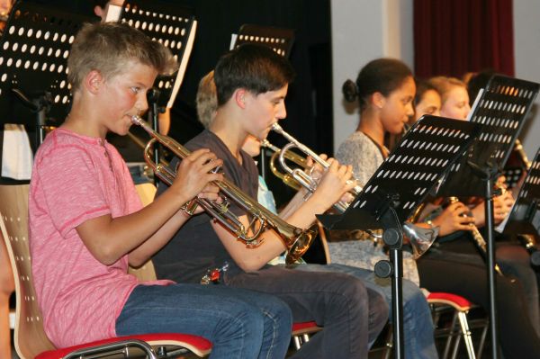 Die Stufe 5 überzeugte mit ,,Freude, schöner Götterfunken" (Bläserklassen) und ,,See you later, Alligator" (Allgemeine Musikpraxis). |
