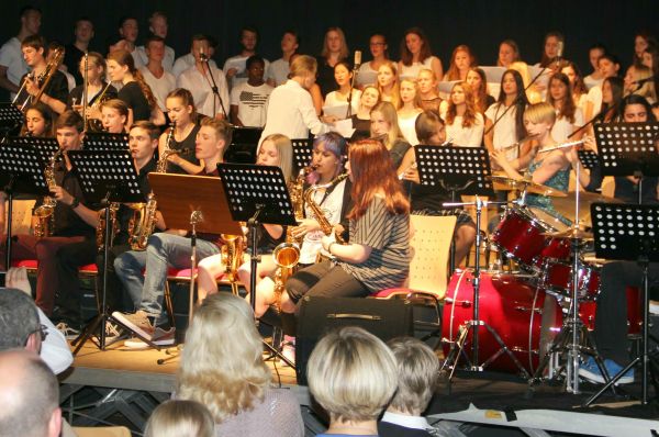 Einen stimmungsvollen Schlusspunkt setzten der Vokalpraktische Kurs und die Big Band mit gleich drei Songs. |