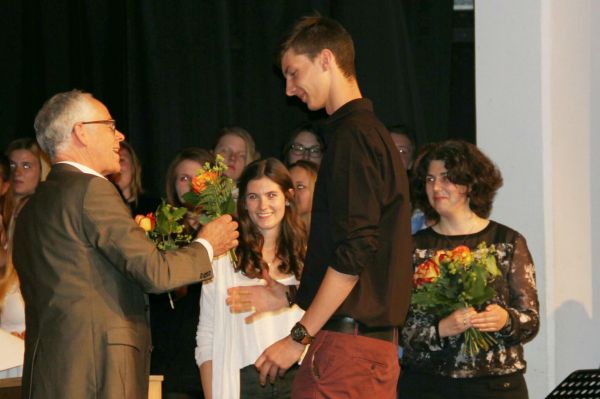 Schulleiter Herr Fischer bedankte sich bei Helena Baumann und Tobias Wittrock, die durch das Programm führten, Elternvertreterin Frau Mönch lobte die Musiklehrerinnen und -lehrer für ihr Engagement. |