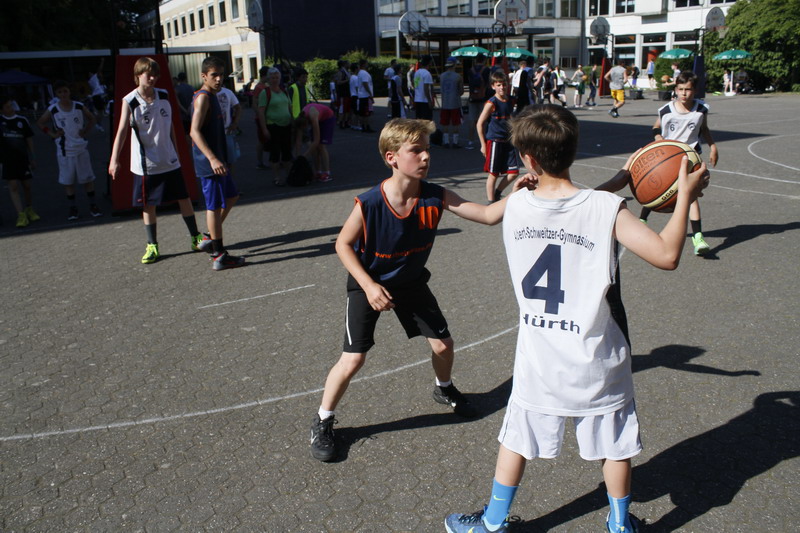 Wie in den Vorjahren stand dann die Teilnahme an einem Städteturnier im Rahmen der NRW-Streetbasketballserie an. Dazu ging es mit 45 Spielerinnen und Spielern in zwölf Teams im dankenswert vom Förderverein finanzierten Bus nach Frechen. Unter den vier Schulen, die sich durch mindst. sieben gemeldete Teams die Prämie eines Netzes mit zehn neuen Basketbällen sicherten, blieb das ASG damit die Schule mit mannschaftlich stärkster Vertretung